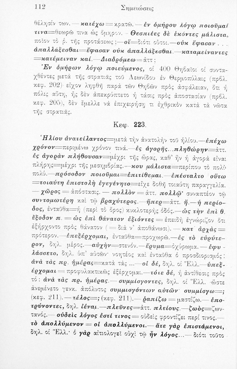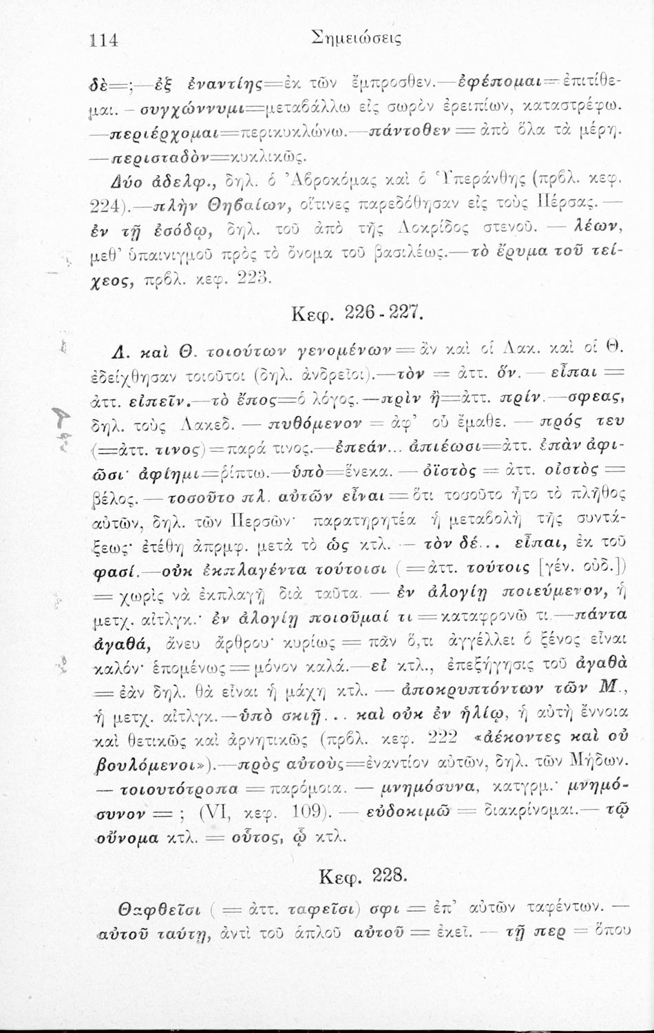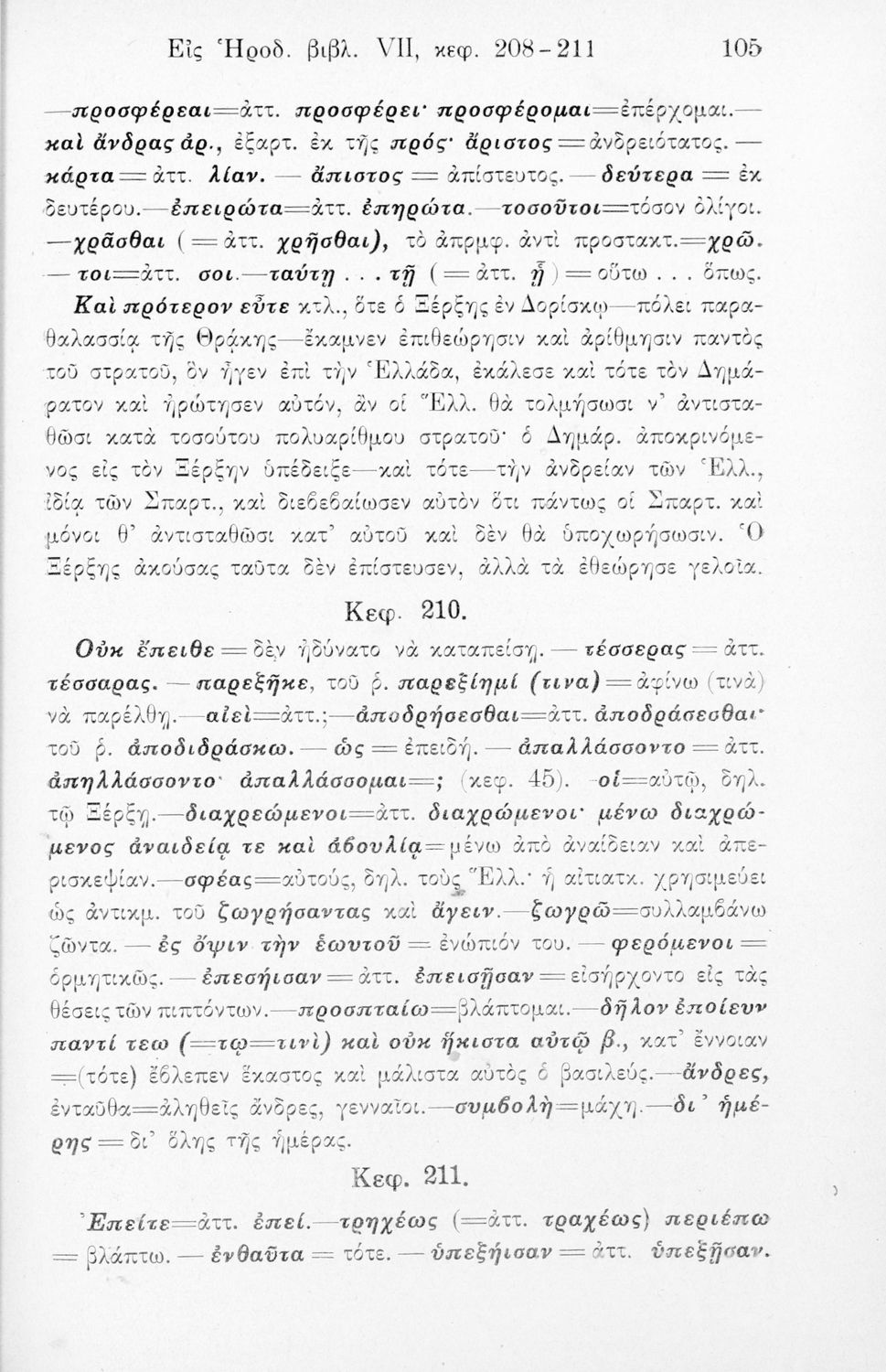 Σχολικό εγχειρίδιο Αρχαίων Ελληνικών Α΄ Γυμνασίου και Α' Διδασκαλείου που περιλαμβάνει αποσπάσματα από το έργο του Ηρόδοτου, ερμηνευτικές σημειώσεις, πραγματολογικά, λεξικολογικά και γραμματικά σχόλια.