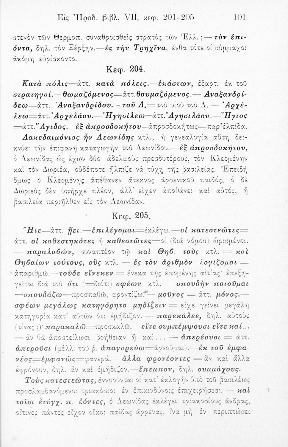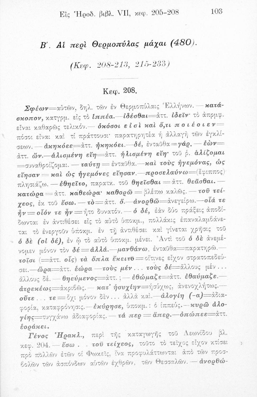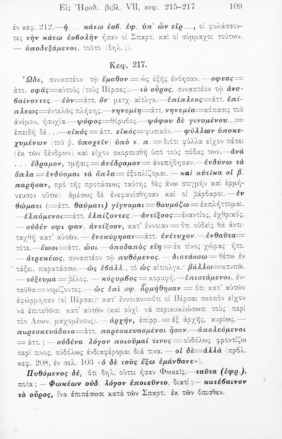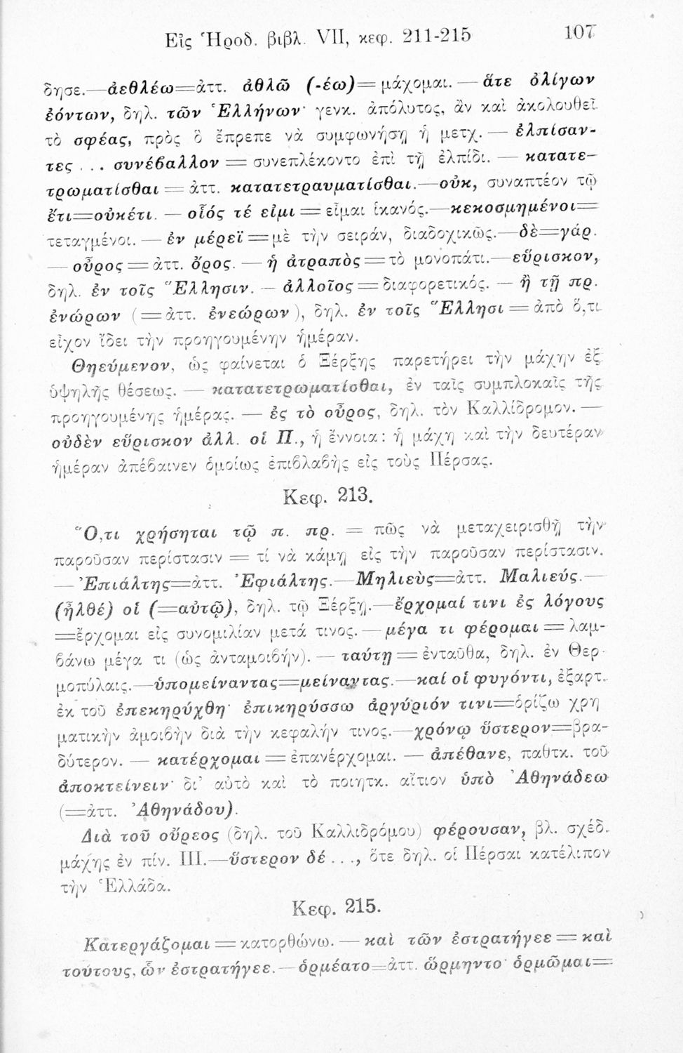 Σχολικό εγχειρίδιο Αρχαίων Ελληνικών Α΄ Γυμνασίου και Α' Διδασκαλείου που περιλαμβάνει αποσπάσματα από το έργο του Ηρόδοτου, ερμηνευτικές σημειώσεις, πραγματολογικά, λεξικολογικά και γραμματικά σχόλια.