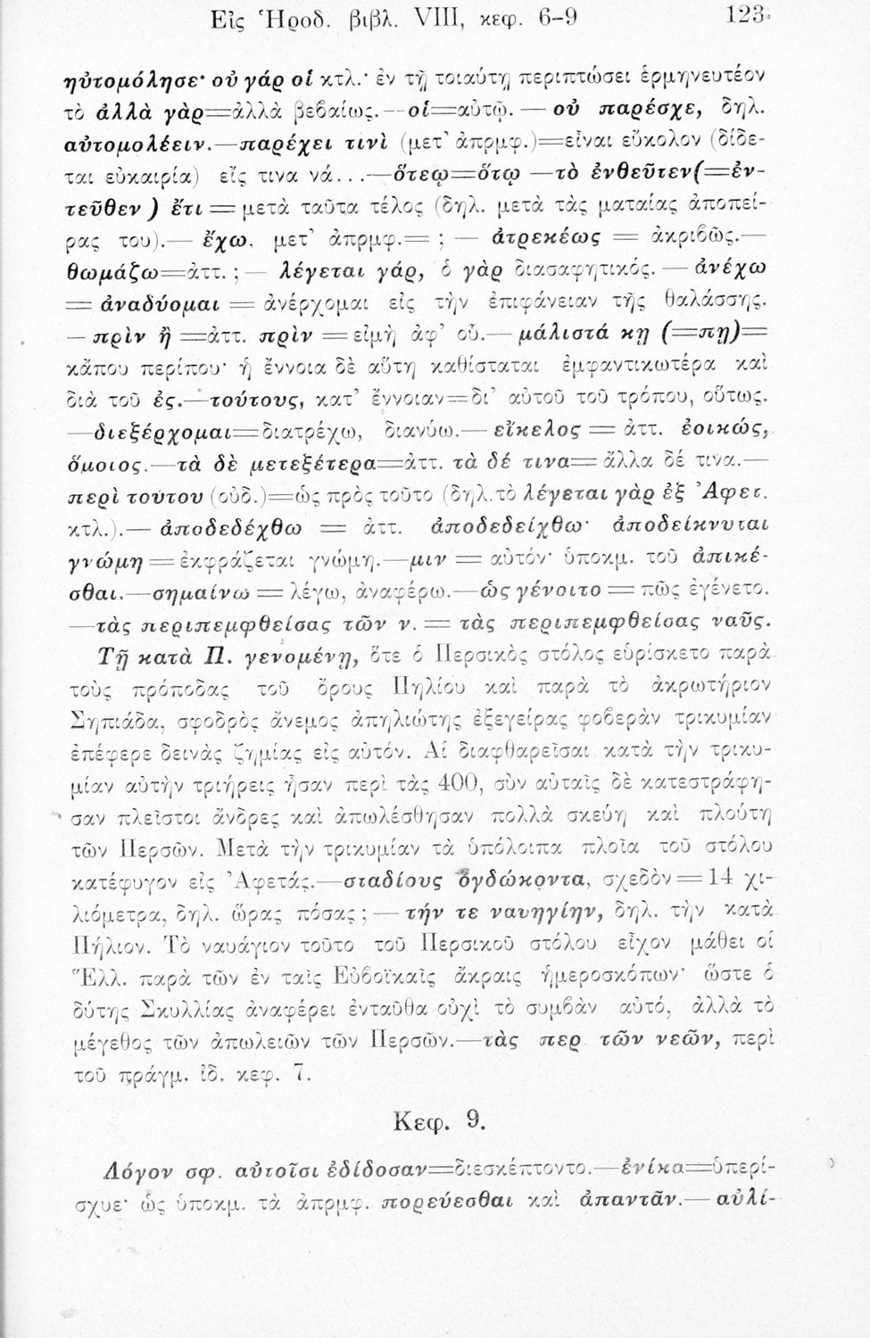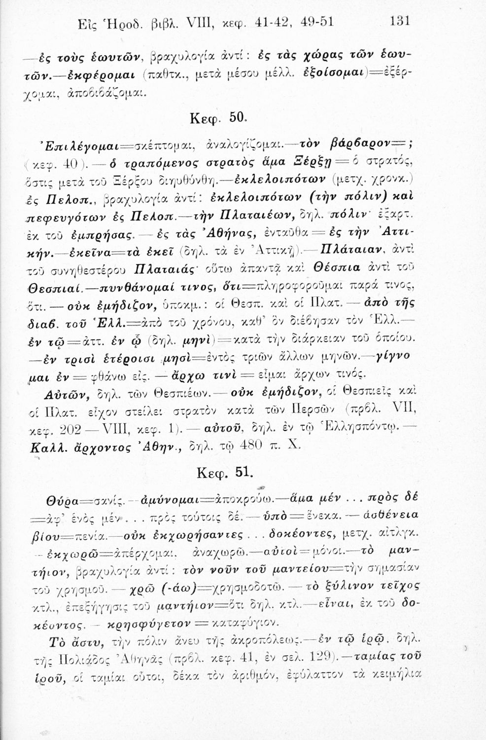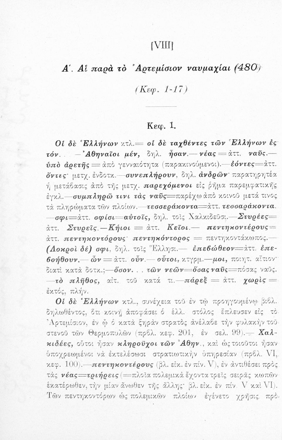 Σχολικό εγχειρίδιο Αρχαίων Ελληνικών Α΄ Γυμνασίου και Α' Διδασκαλείου που περιλαμβάνει αποσπάσματα από το έργο του Ηρόδοτου, ερμηνευτικές σημειώσεις, πραγματολογικά, λεξικολογικά και γραμματικά σχόλια.