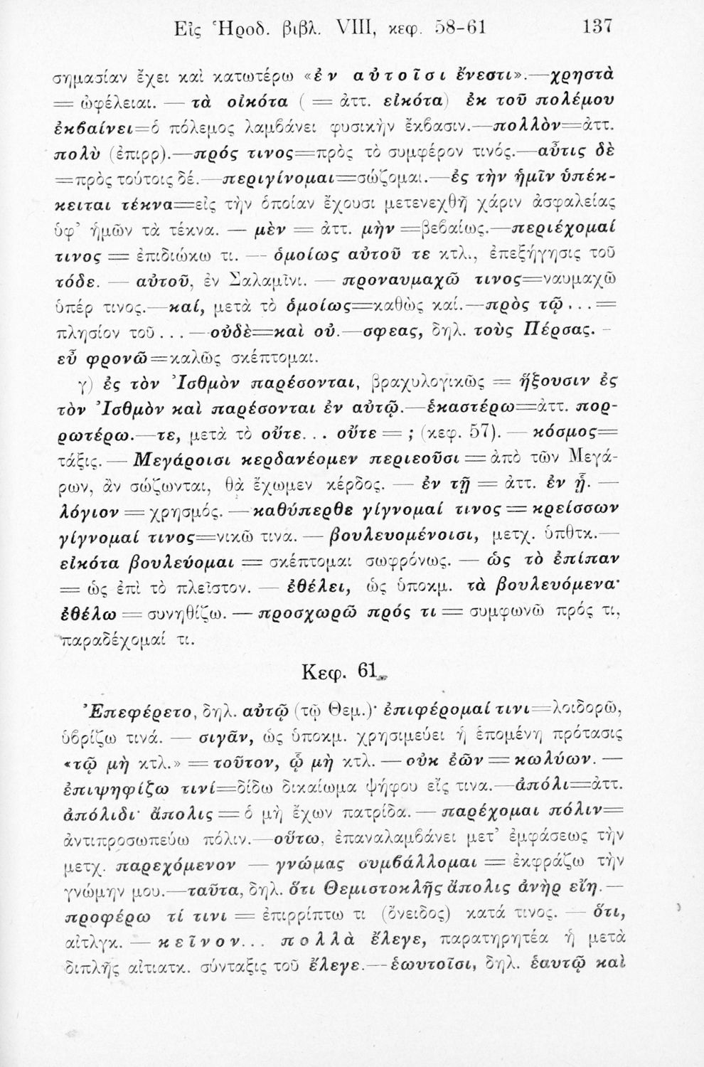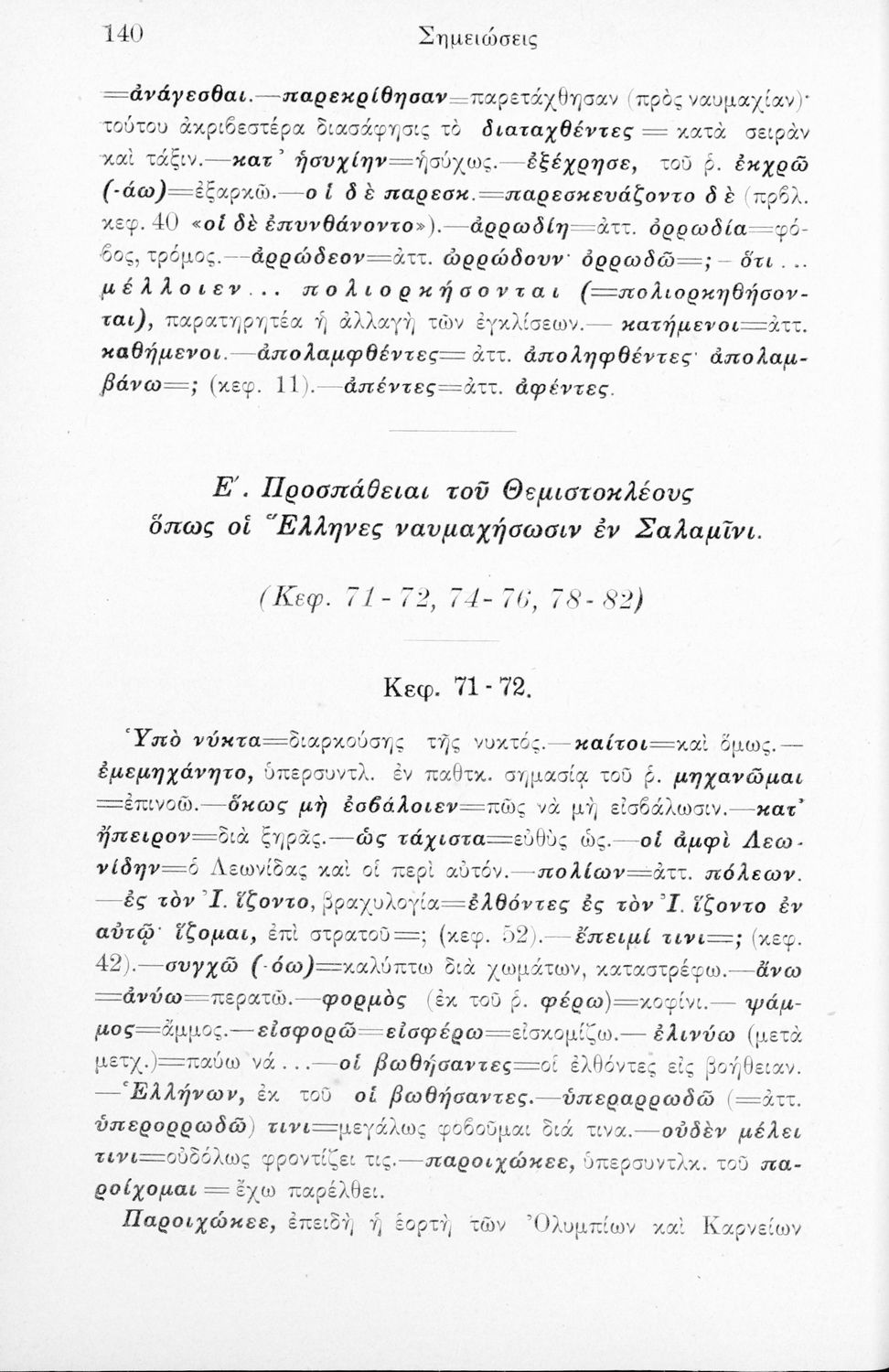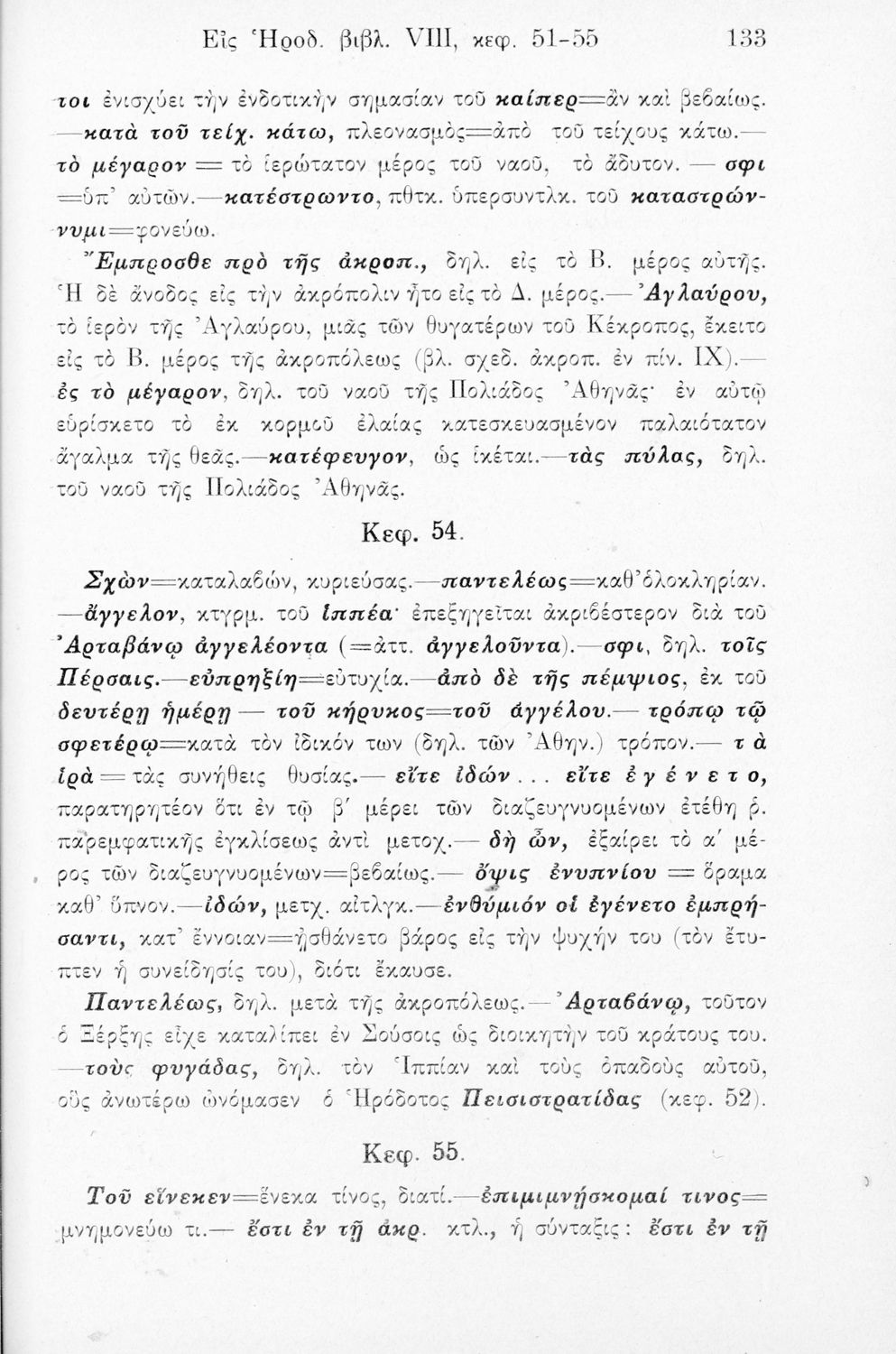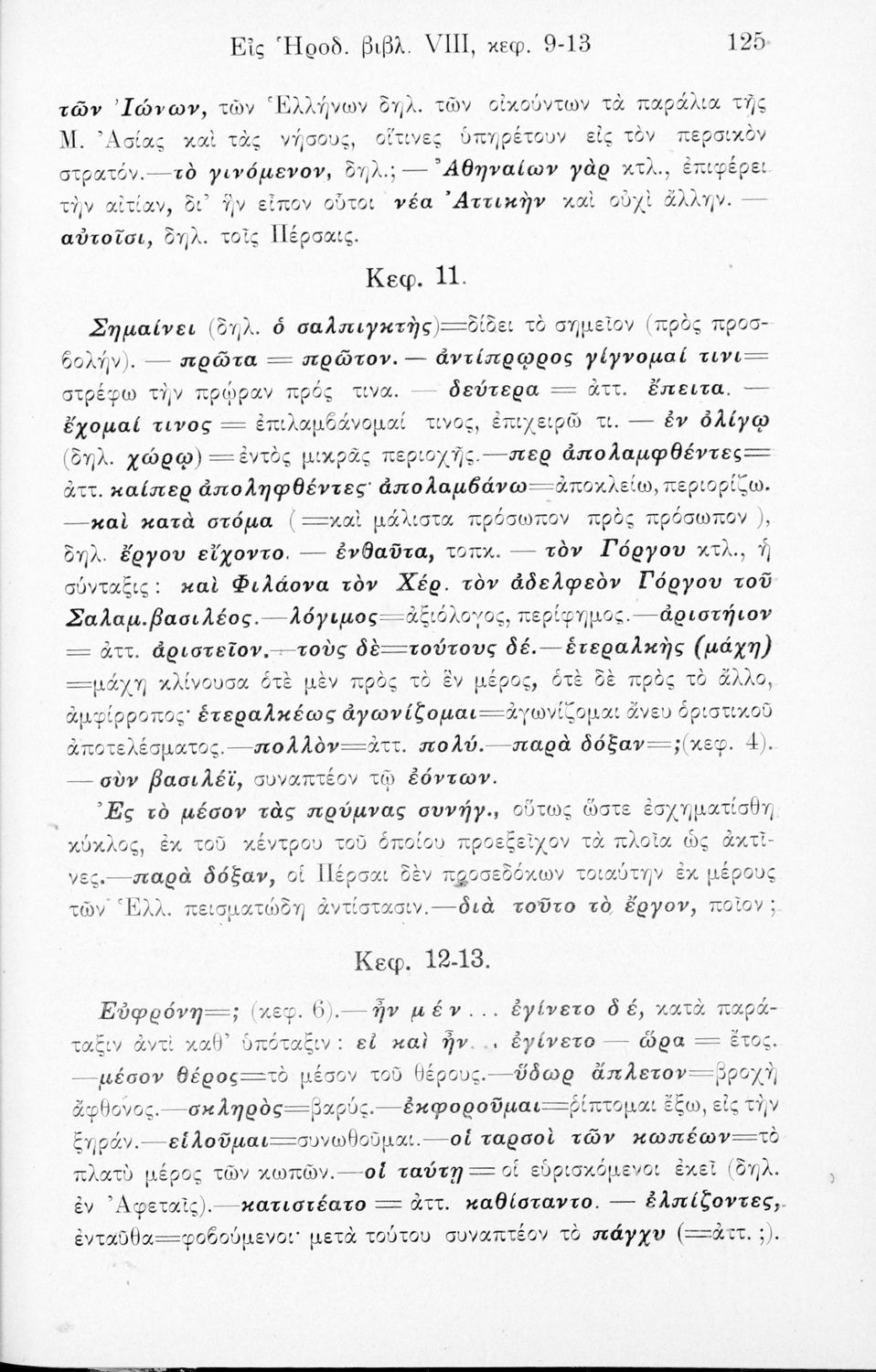 Σχολικό εγχειρίδιο Αρχαίων Ελληνικών Α΄ Γυμνασίου και Α' Διδασκαλείου που περιλαμβάνει αποσπάσματα από το έργο του Ηρόδοτου, ερμηνευτικές σημειώσεις, πραγματολογικά, λεξικολογικά και γραμματικά σχόλια.