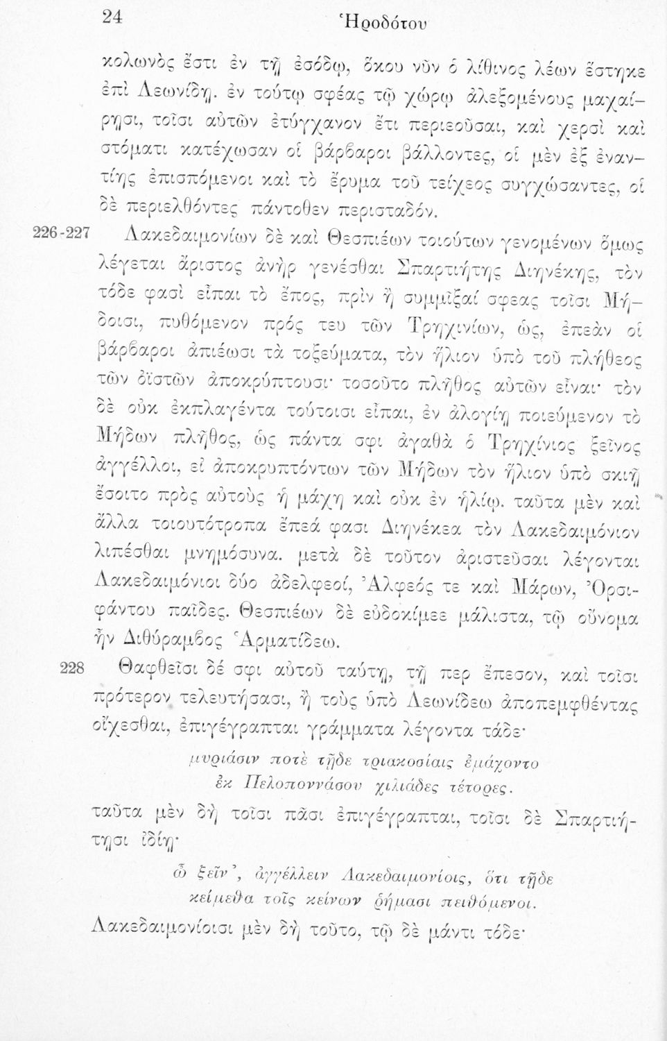 Σχολικό εγχειρίδιο Αρχαίων Ελληνικών Α΄ Γυμνασίου και Α' Διδασκαλείου που περιλαμβάνει αποσπάσματα από το έργο του Ηρόδοτου, ερμηνευτικές σημειώσεις, πραγματολογικά, λεξικολογικά και γραμματικά σχόλια.
