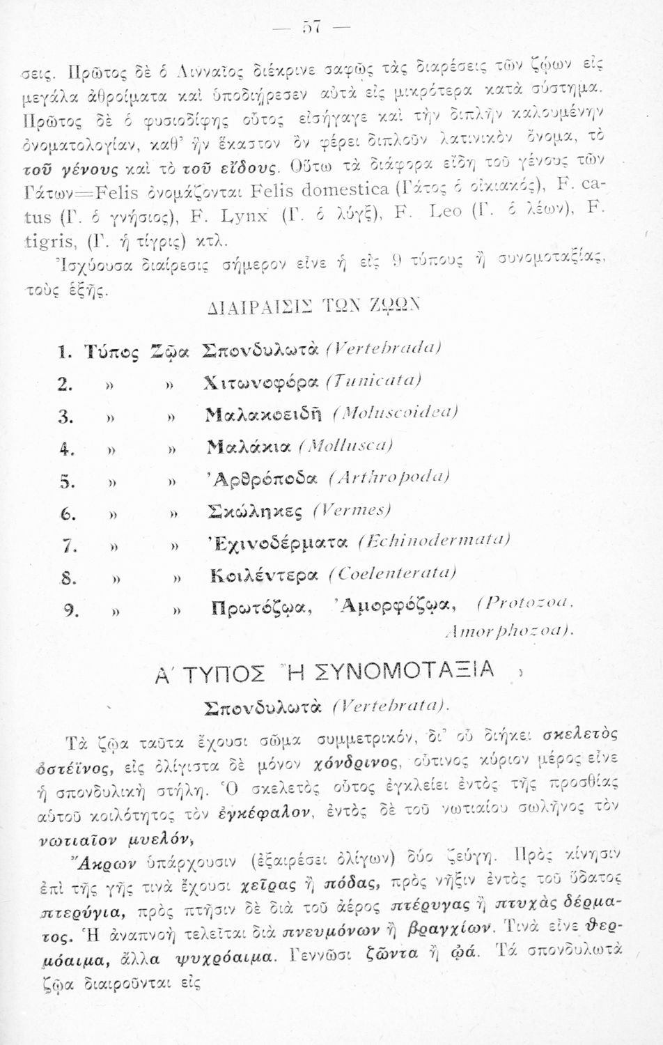 Σχολικό εγχειρίδιο Ζωολογίας για την Γ΄ τάξη των Εξαταξίων Γυμνασίων που παρουσιάζει τα διάφορα ζώα ανάλογα με την συνομοταξία στην οποία ανήκουν.