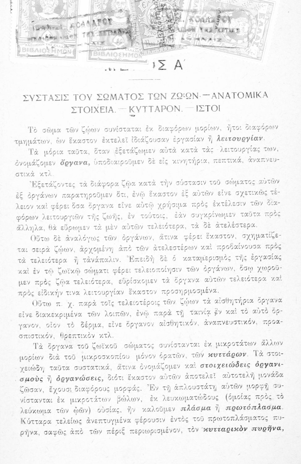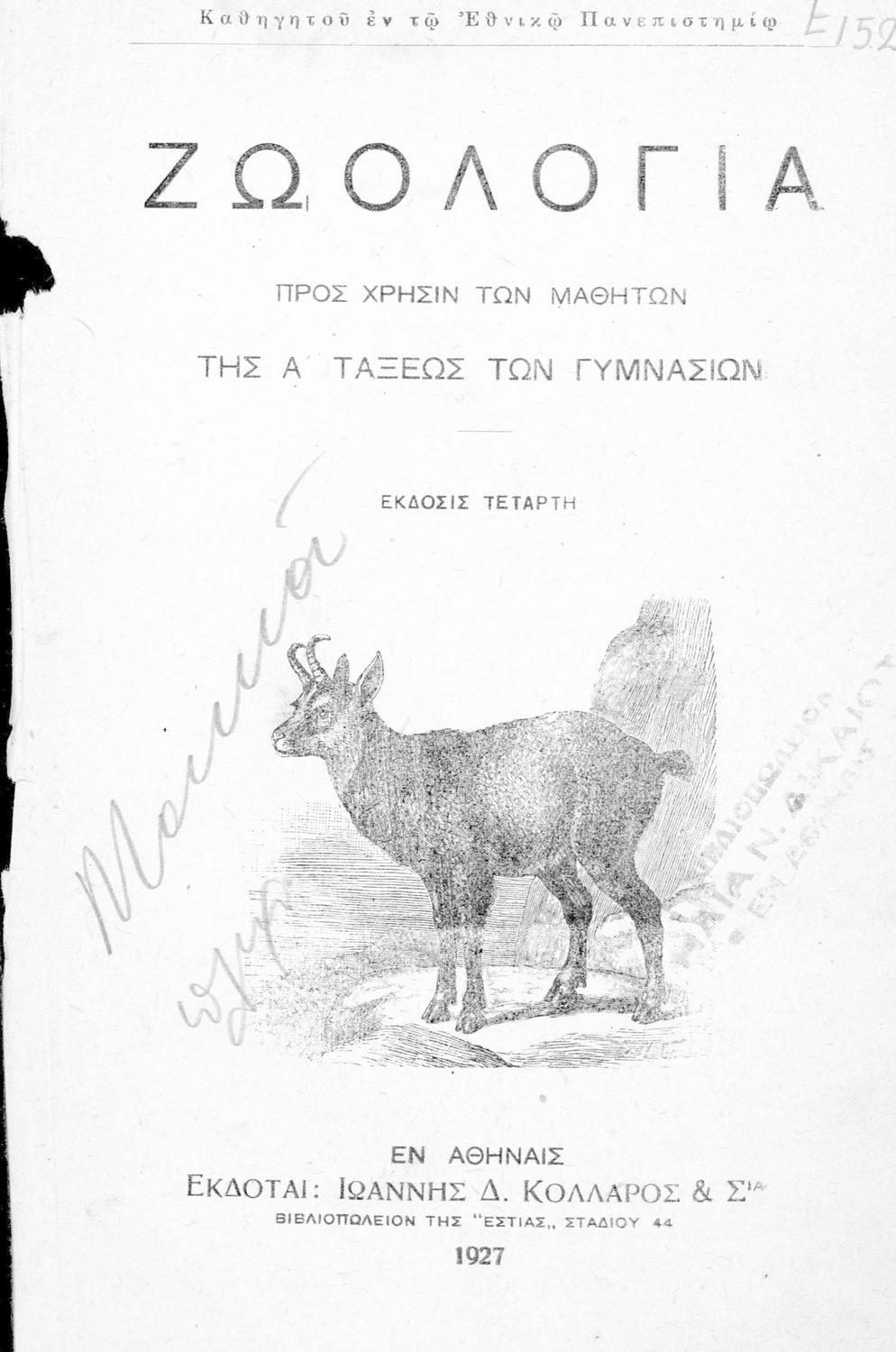 Τίτλος: Ζωολογία προς χρήσιν μαθητών της Α΄ τάξεως των Γυμνασίων