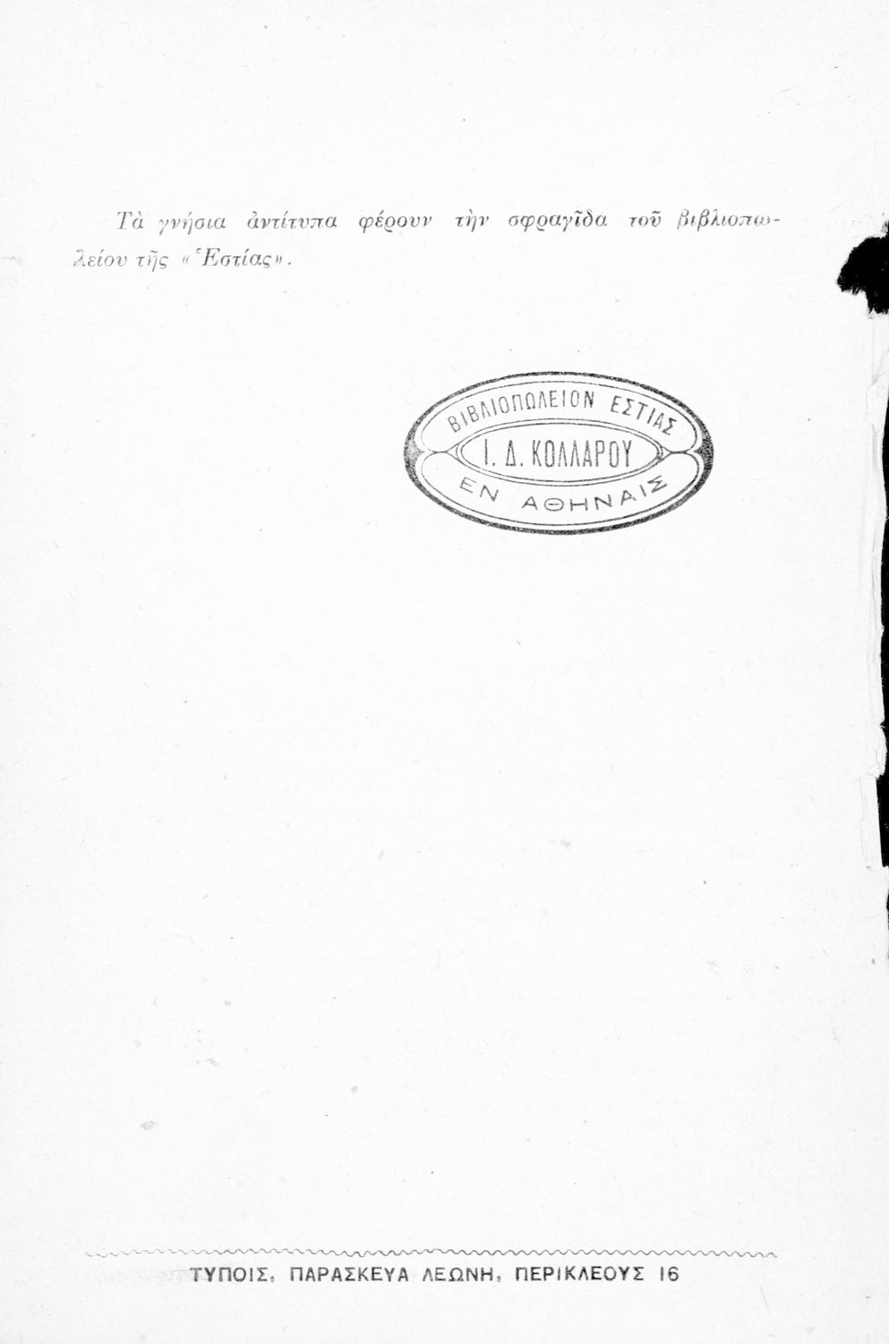 Εκδότης: Ιωάννης Δ. Κολλάρος, Βιβλιοπωλείο της "Εστίας"