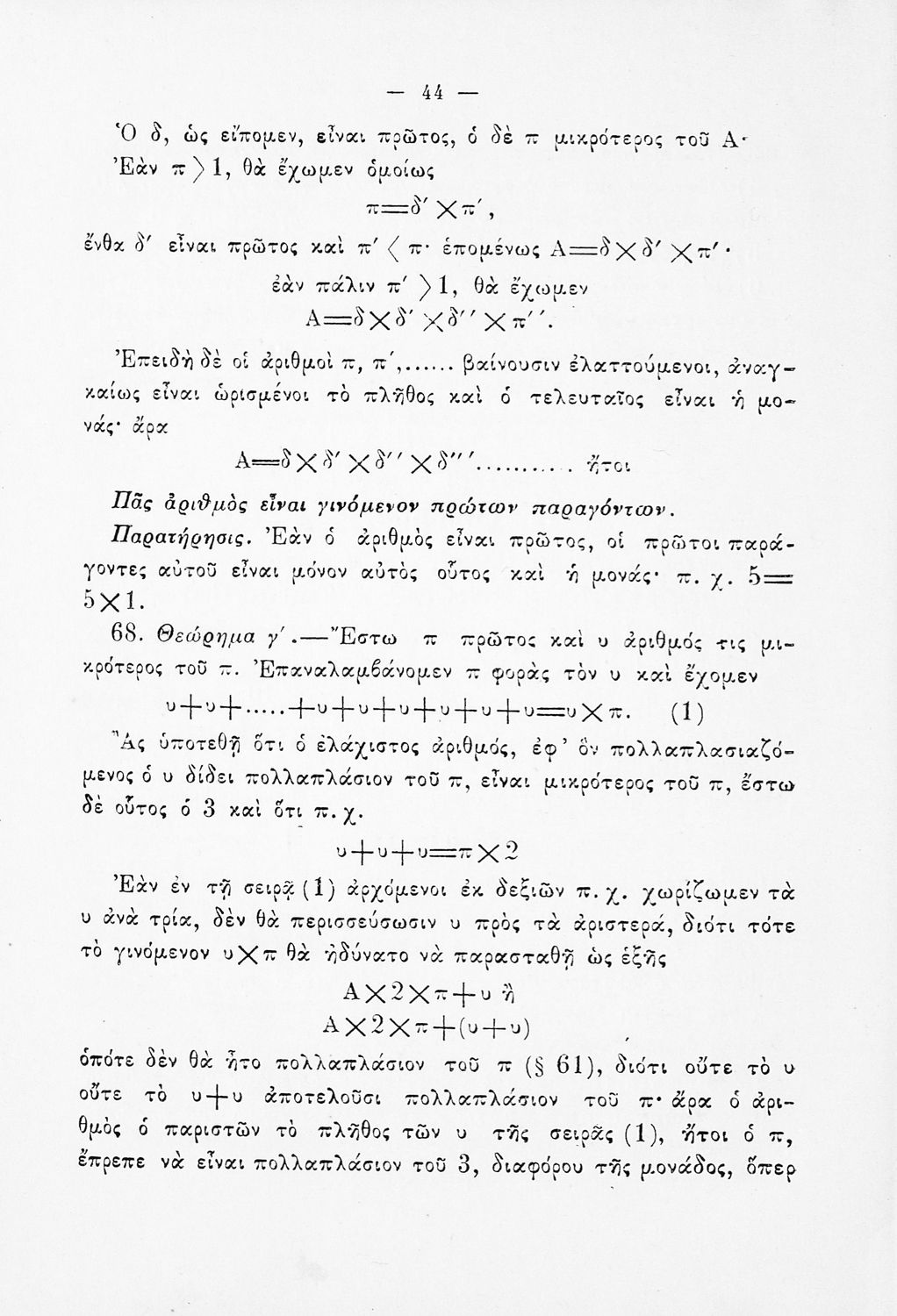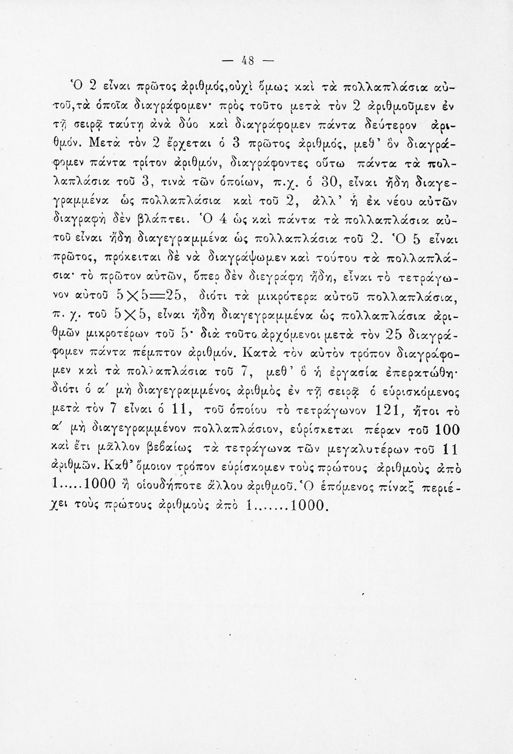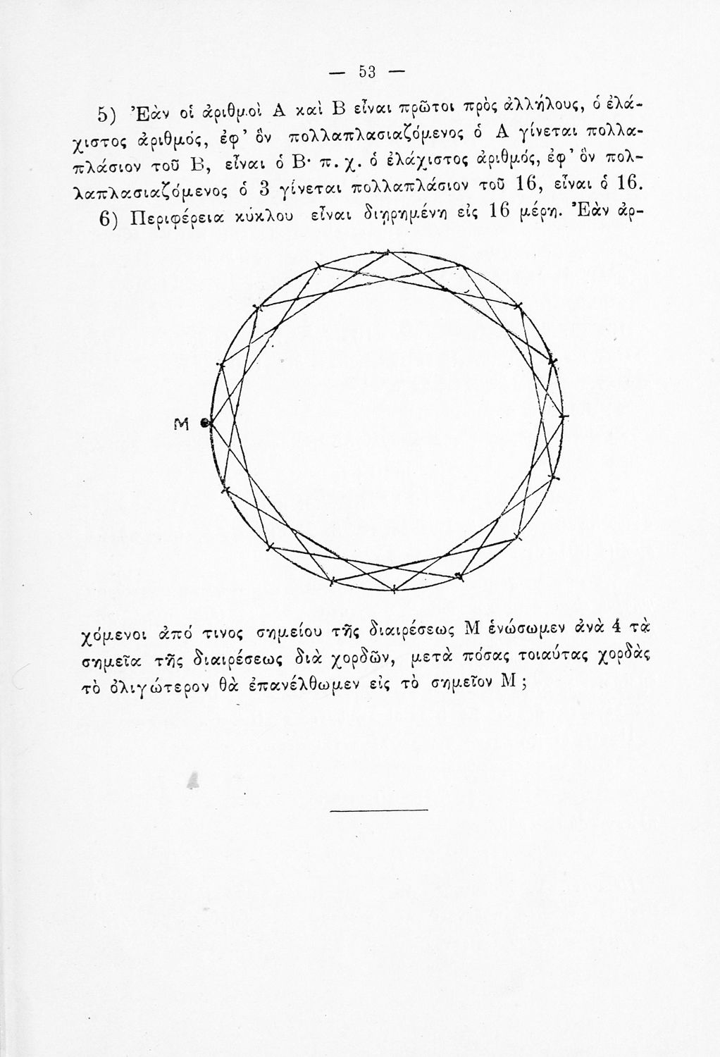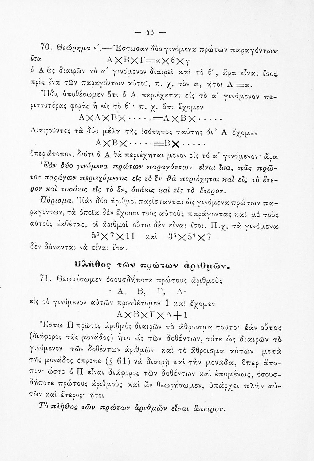 Βαθμίδα εκπαίδευσης: Δευτεροβάθμια Τάξη: Γυμνάσιο Μάθημα: Αριθμητική Γλώσσα: Καθαρεύουσα Παρουσίαση περιεχομένου: Σχολικό εγχειρίδιο Αριθμητικής Γυμνασίου που περιλαμβάνει θεωρία, ασκήσεις και προβλήματα που σχετίζονται με τις αριθμητικές πράξεις, τα κλάσματα, τις αριθμητικές παραστάσεις, τις εξισώσεις, τα ανάλογα ποσά, το επιτόκιο, και το μέρισμα. |