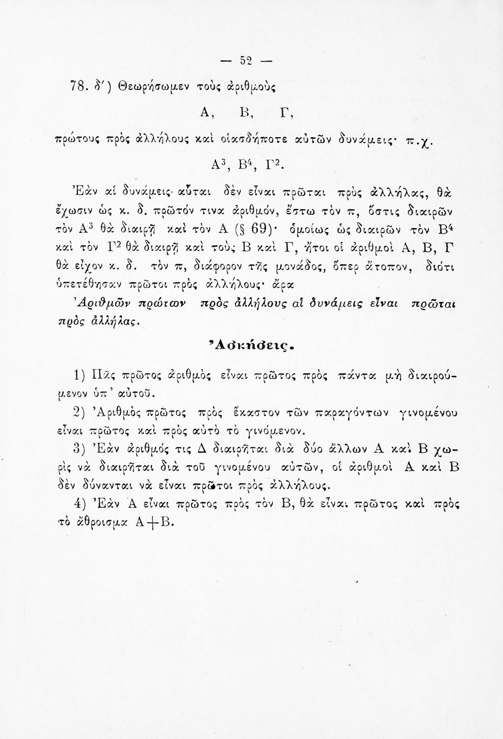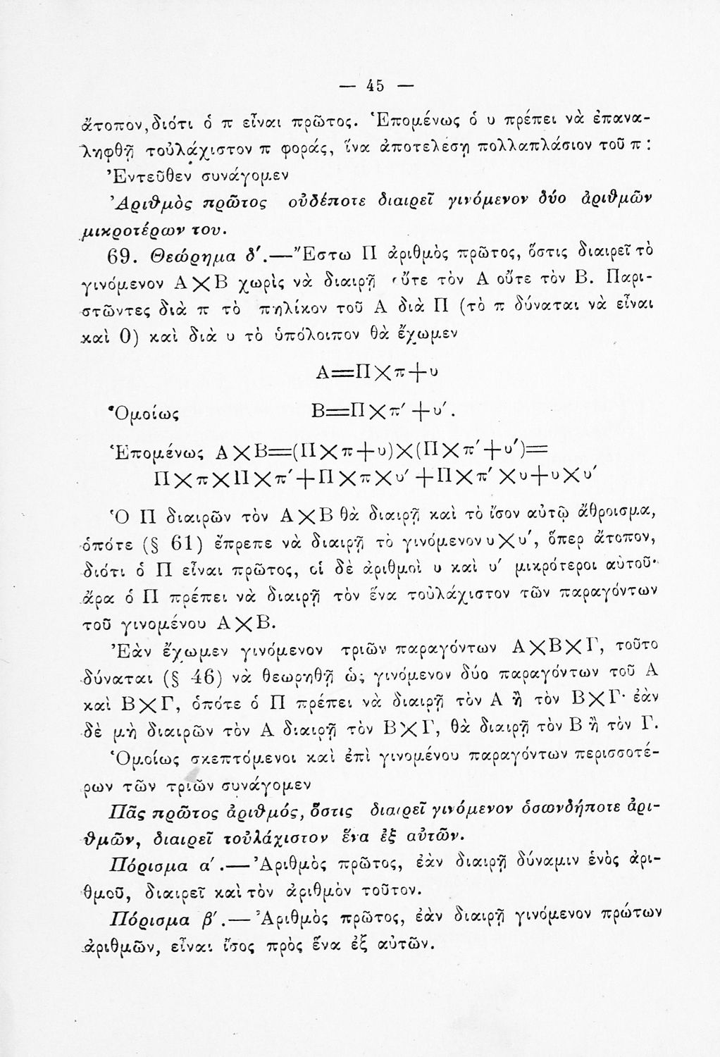 Κωδικός αναγνώρισης: 20-E0154 Τίτλος: Θεωρητική αριθμητική προς χρήσιν των Γυμνασίων Συγγραφέας: Νικ. Ε. Νυστεράκης Μέγεθος και υπόστρωμα: Σχολικό εγχειρίδιο, 20εκ., σκληρό εξώφυλλο, 242 σελίδες. Σχεδιαγράμματα. |
