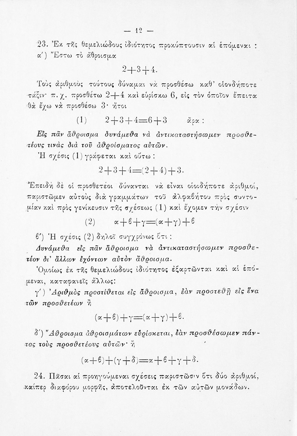 LDR 01295 2200193 4500 035 ## _a20-E0154 040 ## _aΚΕΝΕΚ - Εταιρεία Σπουδών Νεοελληνικού Πολιτισμού και Παιδείας 041 ## _ael 100 ## _aΝικ. Ε. Νυστεράκης 110 ## _aE0154 245 0# _aΘεωρητική αριθμητική προς χρήσιν των Γυμνασίων 260 ## _aΑθήνα _bΙωάννης Δ. Κολλάρος, Βιβλιοπωλείο της "Εστίας" _c1909 300 ## _a242 _bΣχεδιαγράμματα _c20 520 ## _aΣχολικό εγχειρίδιο Αριθμητικής Γυμνασίου που περιλαμβάνει θεωρία, ασκήσεις και προβλήματα που σχετίζονται με τις αριθμητικές πράξεις, τα κλάσματα, τις αριθμητικές παραστάσεις, τις εξισώσεις, τα ανάλογα ποσά, το επιτόκιο, και το μέρισμα. 521 ## _aΓυμνάσιο 522 ## _aΕλλάδα 546 ## _aΚαθαρεύουσα 563 ## _aΣκληρό Εξώφυλλο 650 #4 _aΑνάλογα ποσά _aΑριθμητικές παραστάσεις _aΕπιτόκιο _aΚλάσματα _aΜέρισμα _aΜίξη