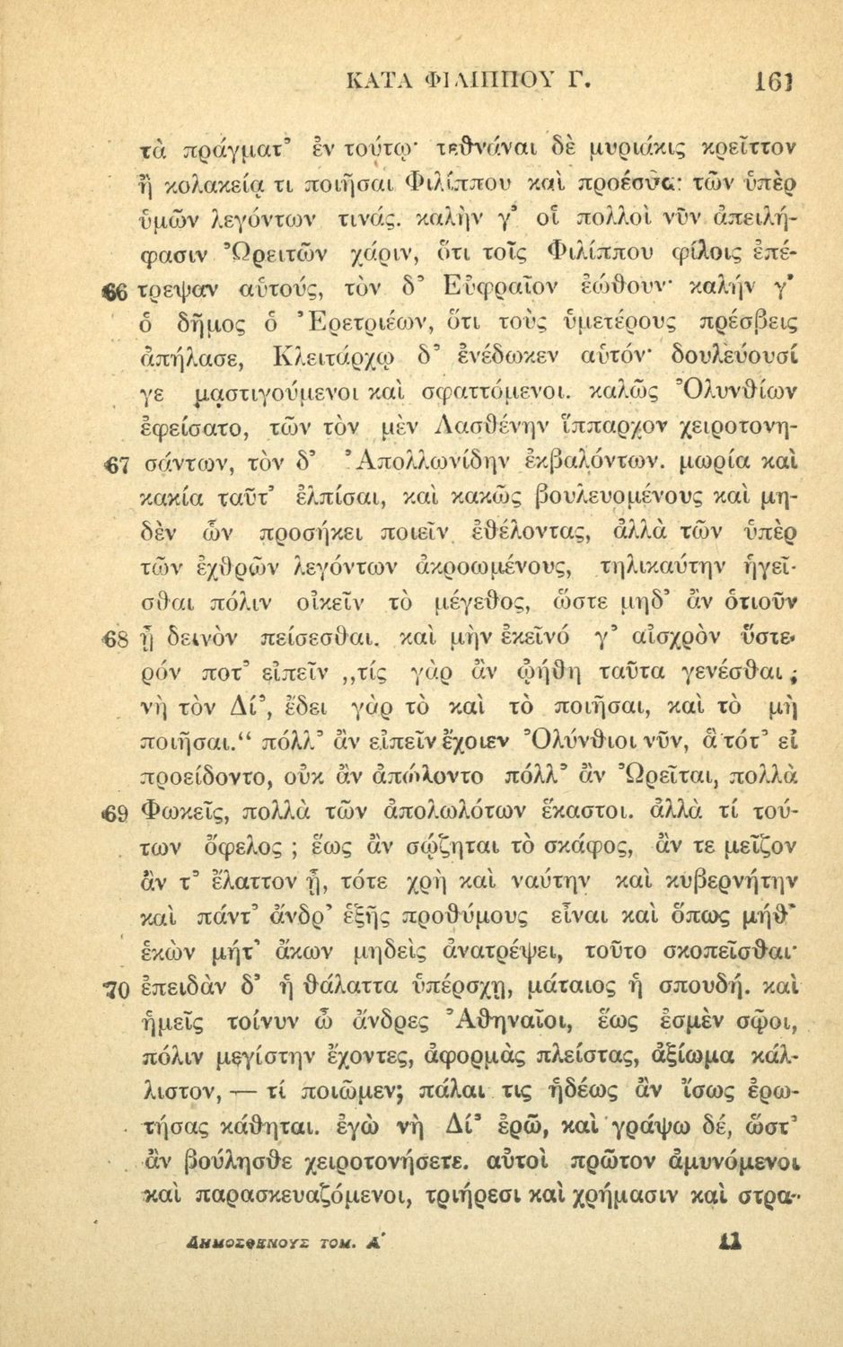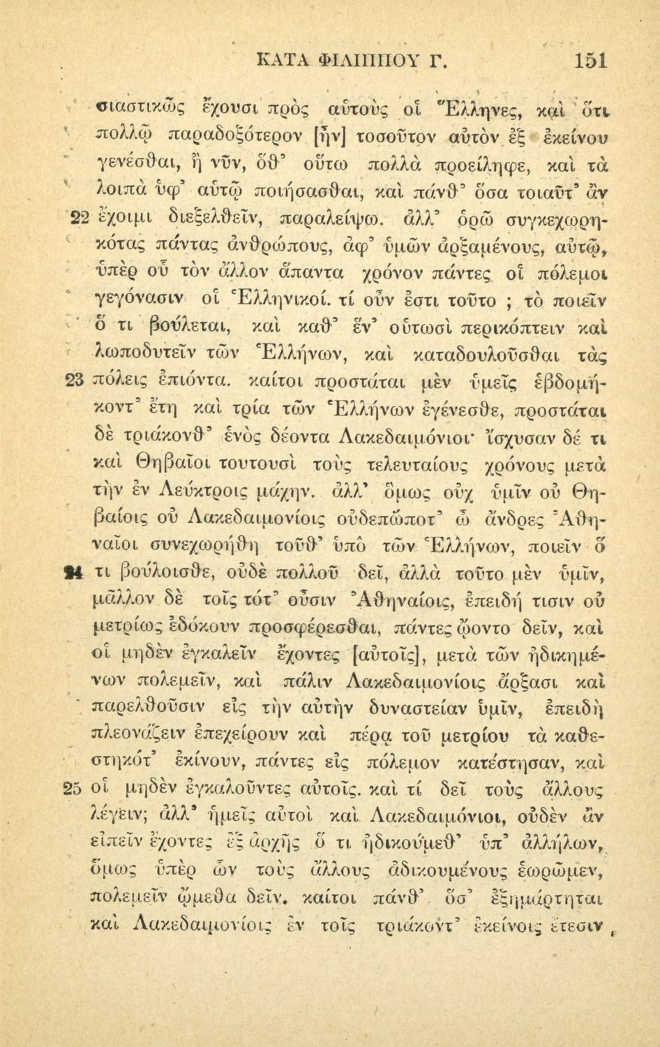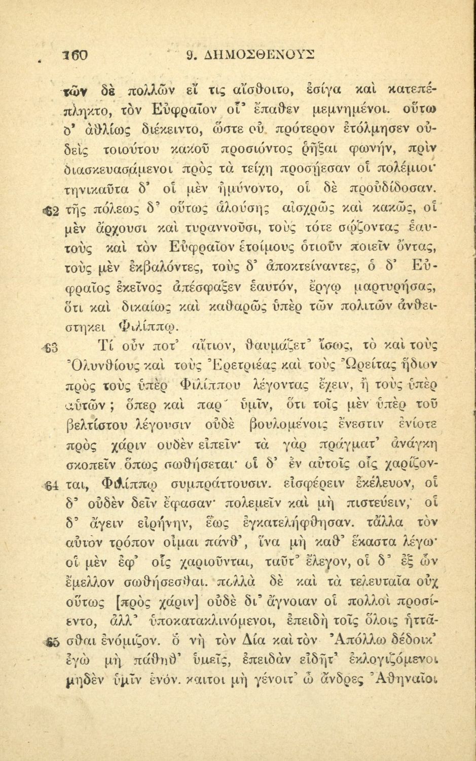 Σχολικό εγχειρίδιο Αρχαίων Ελληνικών που περιλαμβάνει Λόγους του Δημοσθένη μεταξύ των οποίων είναι οι 3 Ολυνθιακοί και οι 4 Φιλιππικοί.