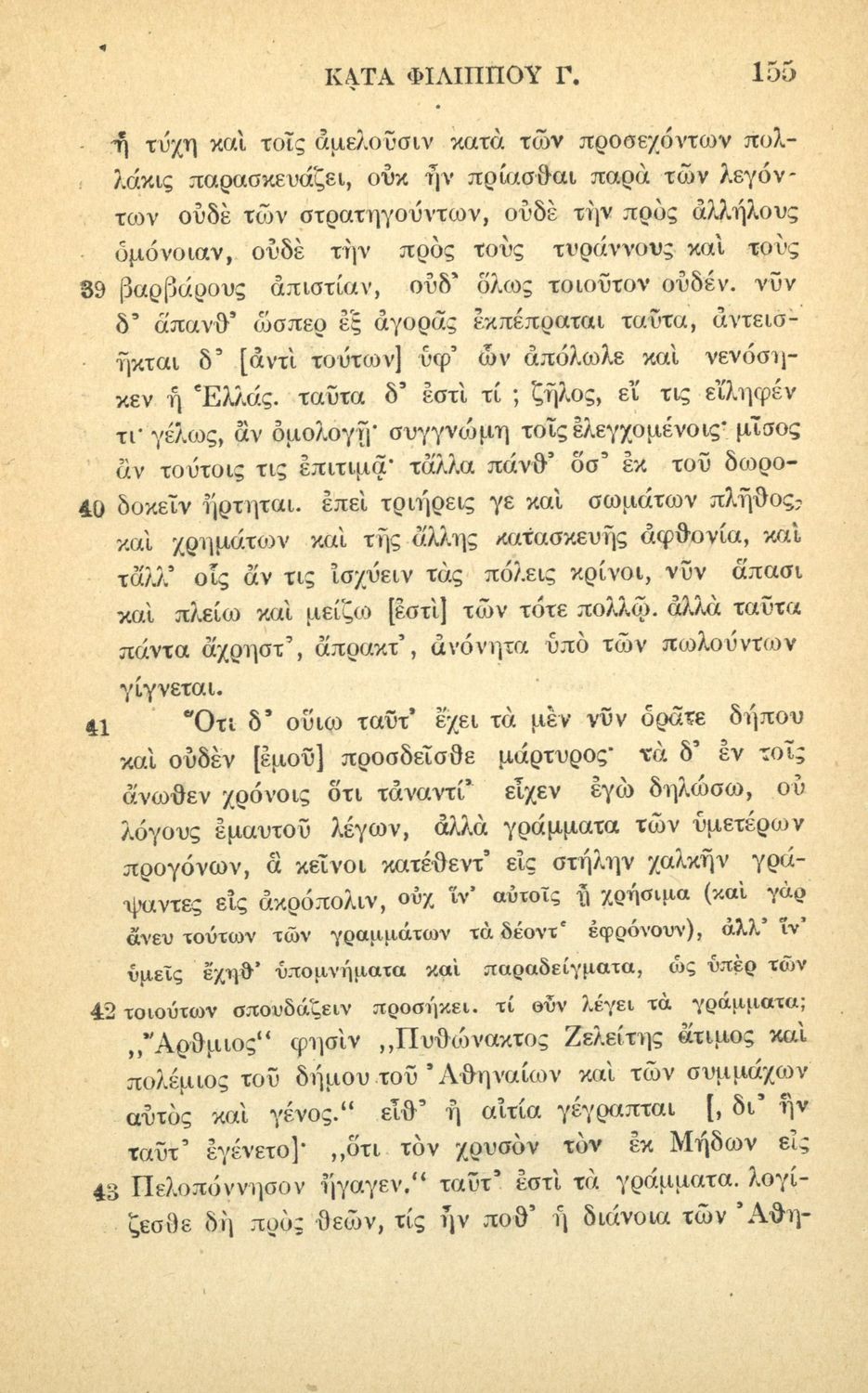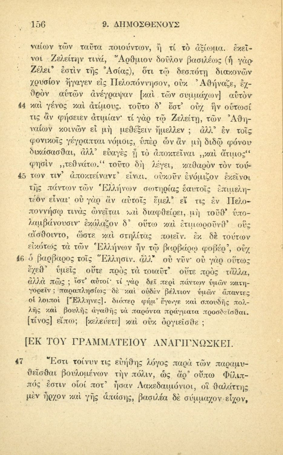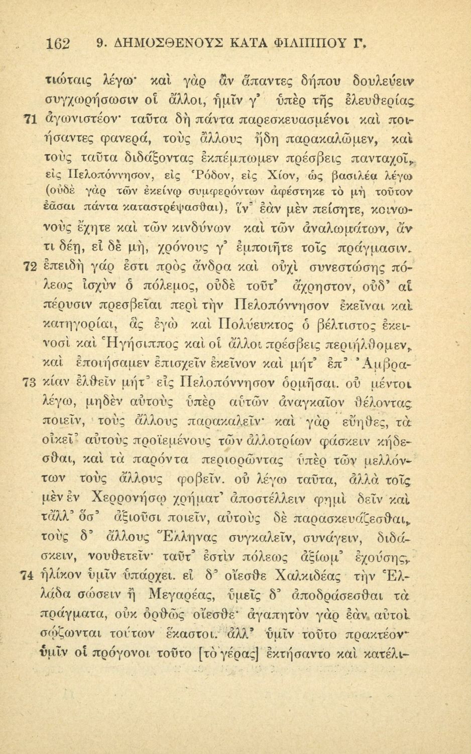 Σχολικό εγχειρίδιο Αρχαίων Ελληνικών που περιλαμβάνει Λόγους του Δημοσθένη μεταξύ των οποίων είναι οι 3 Ολυνθιακοί και οι 4 Φιλιππικοί.