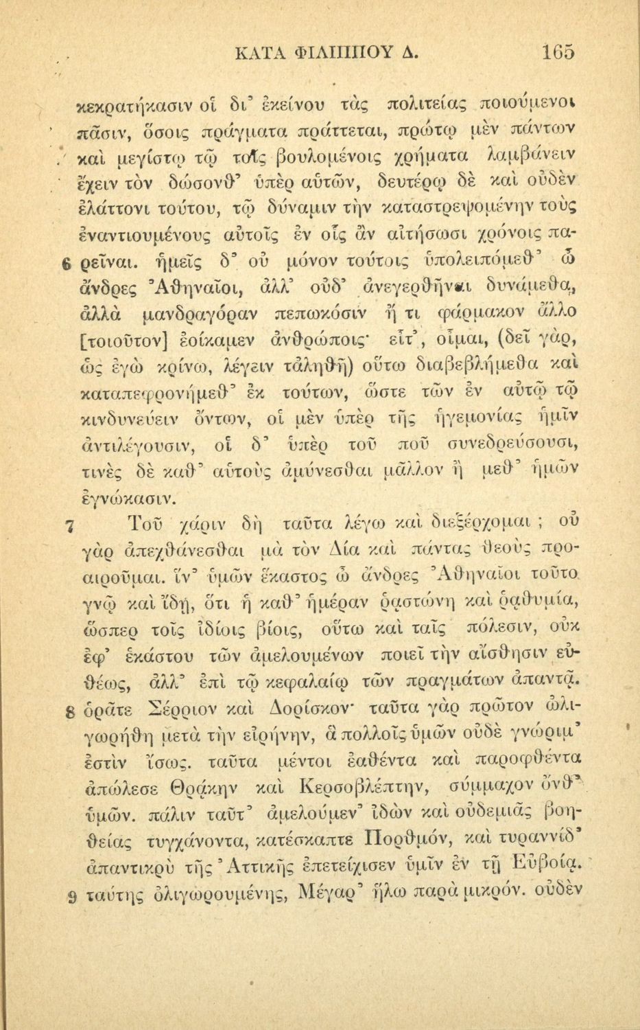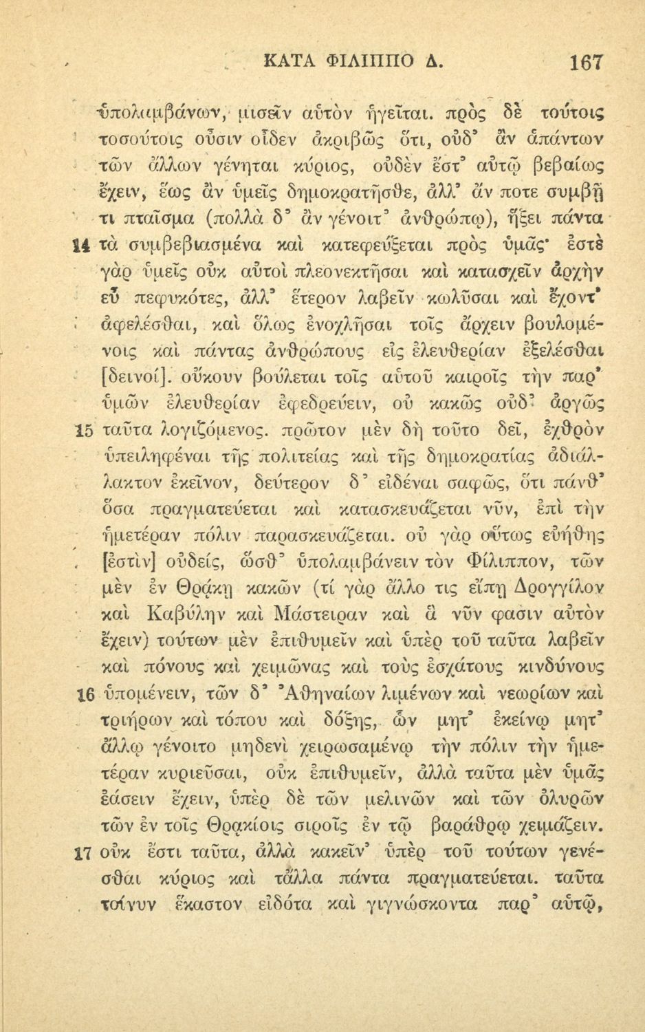 Σχολικό εγχειρίδιο Αρχαίων Ελληνικών Δ΄ Γυμνασίου που περιλαμβάνει τους Ολυνθιακούς Α΄ και Β΄ και τους Φιλιππικούς Α΄ και Β' του Δημοσθένη, τον Λόγο κατά Λεωκράτους του Λυκούργου και Επιστολές του Ισοκράτη, ...