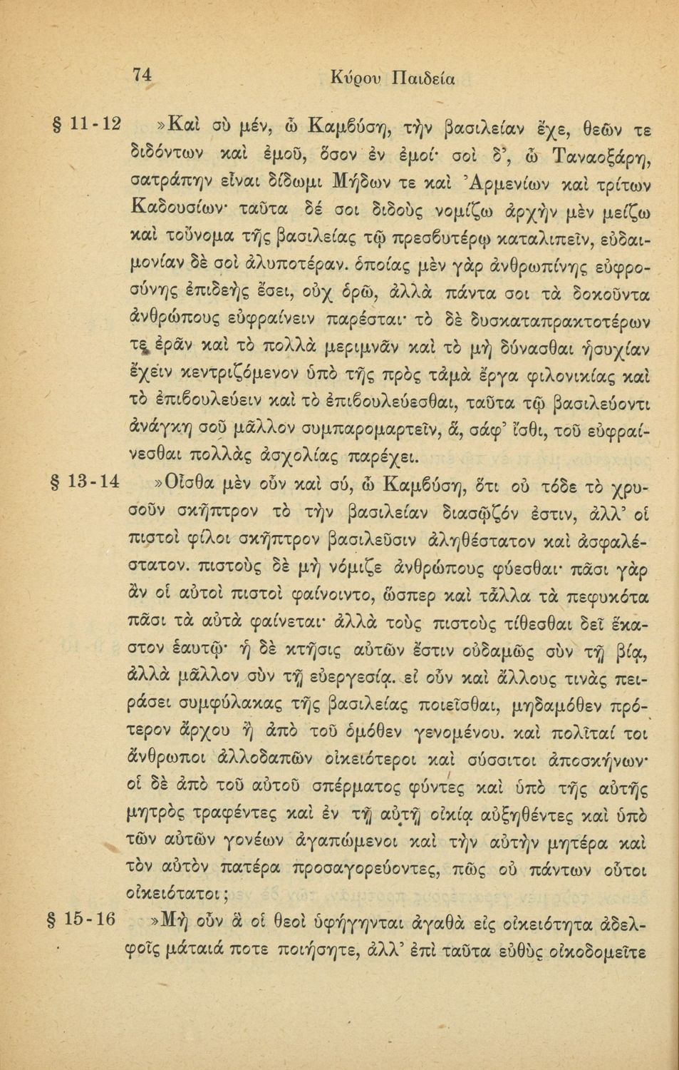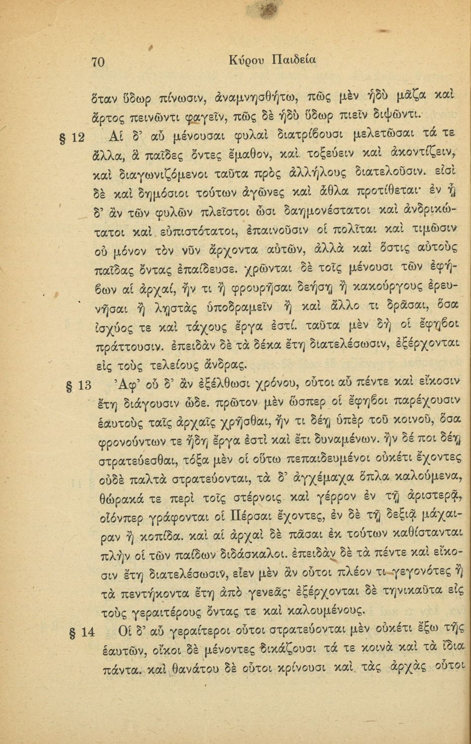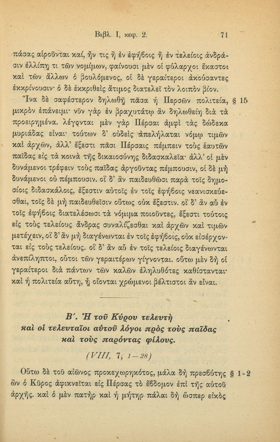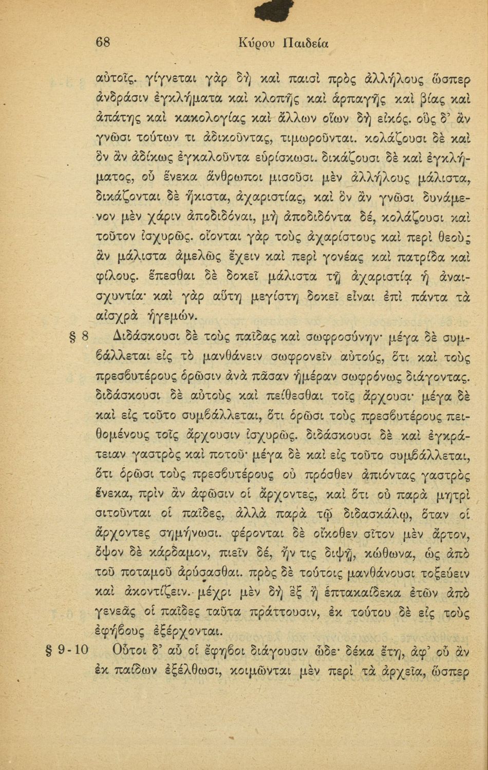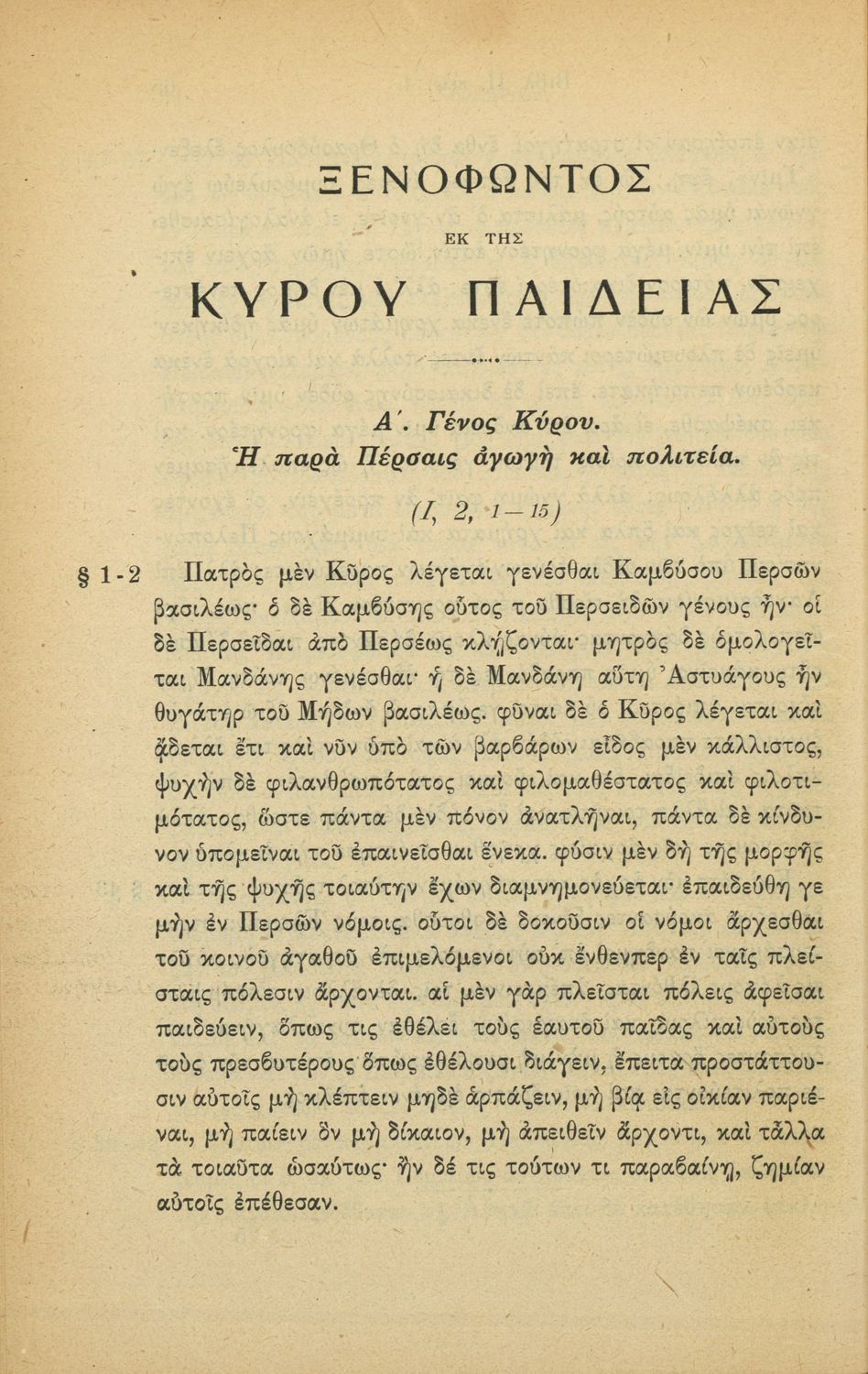 Σχολικό εγχειρίδιο Αρχαίων Ελληνικών που περιλαμβάνει αποσπάσματα από τα έργα του Ξενοφώντα Ελληνικά και Κύρου Παιδεία, ερμηνευτικές σημειώσεις και γραμματικά και πραγματολογικά σχόλια.