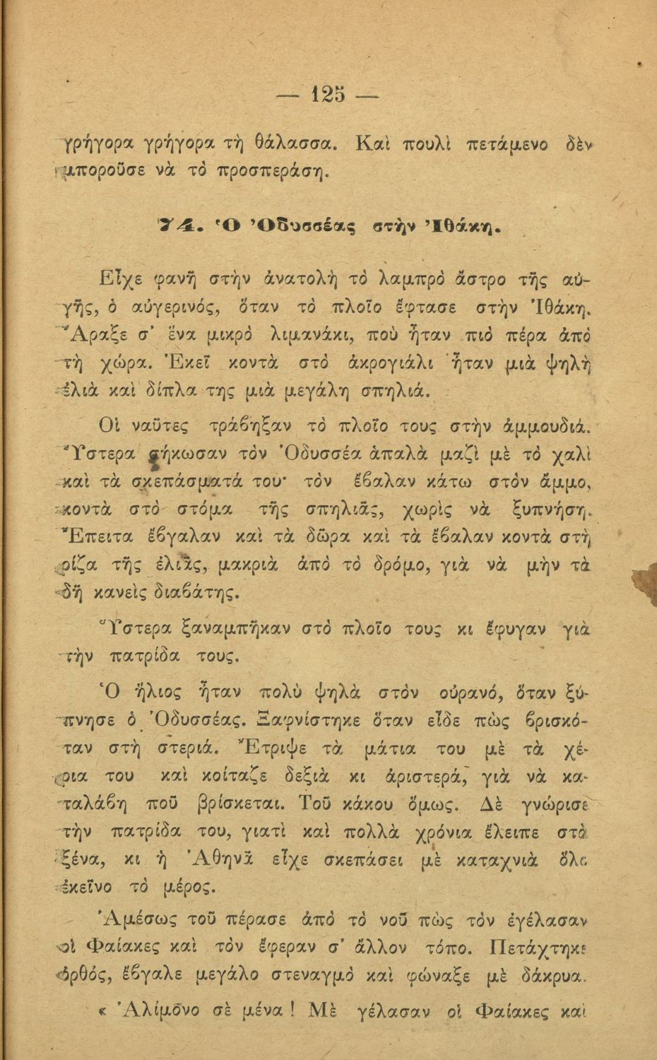 Αναγνωστικό Γ΄ Δημοτικού που εξιστορεί τις περιπέτειες του Οδυσσέα από τον Τρωικό Πόλεμο ως την επιστροφή του στην Ιθάκη.