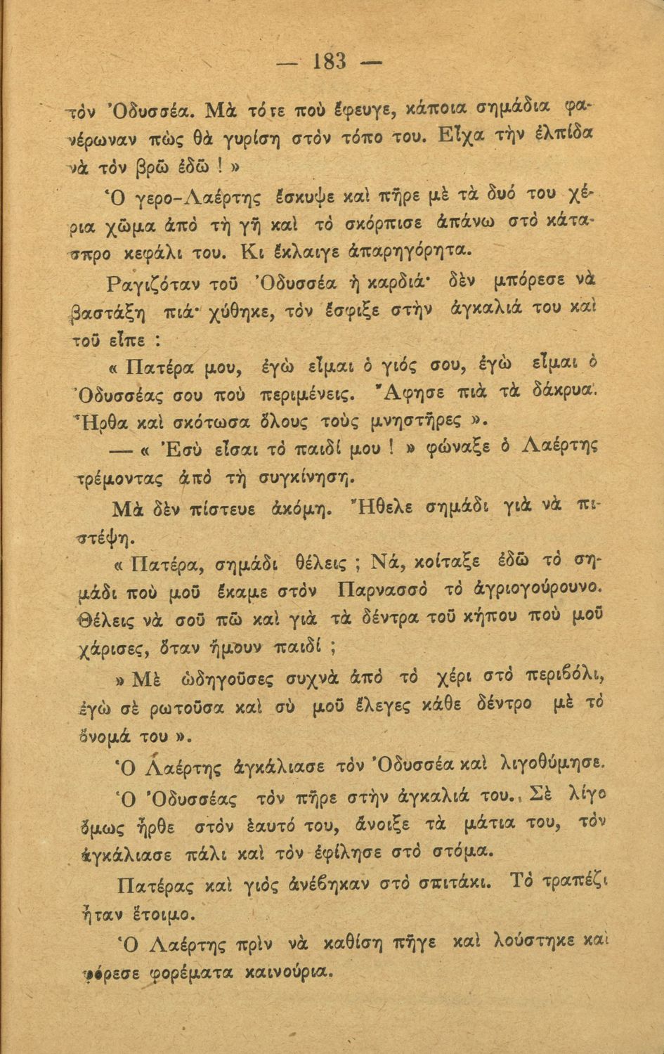 Αναγνωστικό Γ΄ Δημοτικού που εξιστορεί τις περιπέτειες του Οδυσσέα από τον Τρωικό Πόλεμο ως την επιστροφή του στην Ιθάκη.