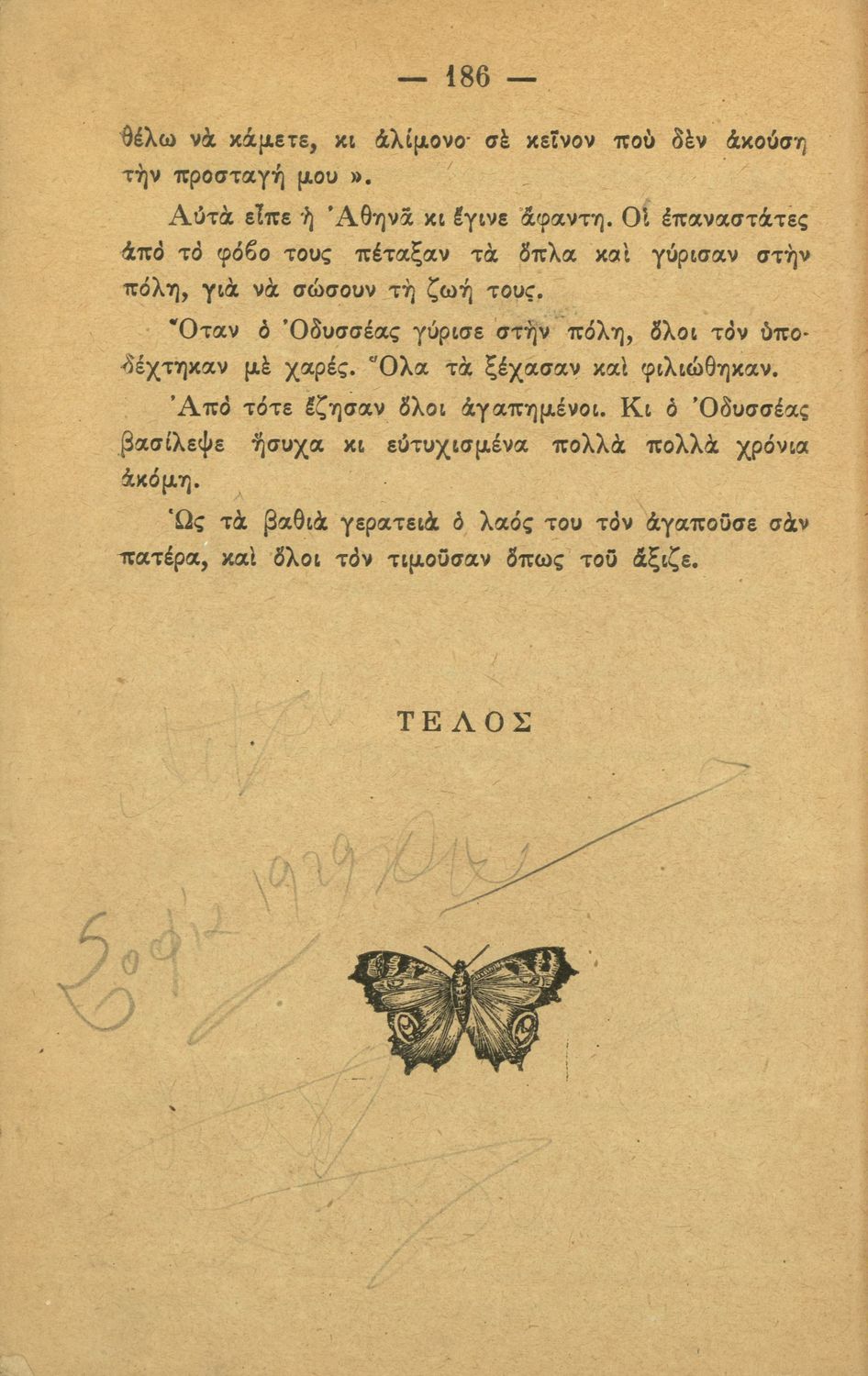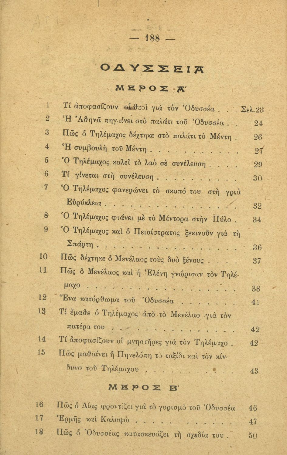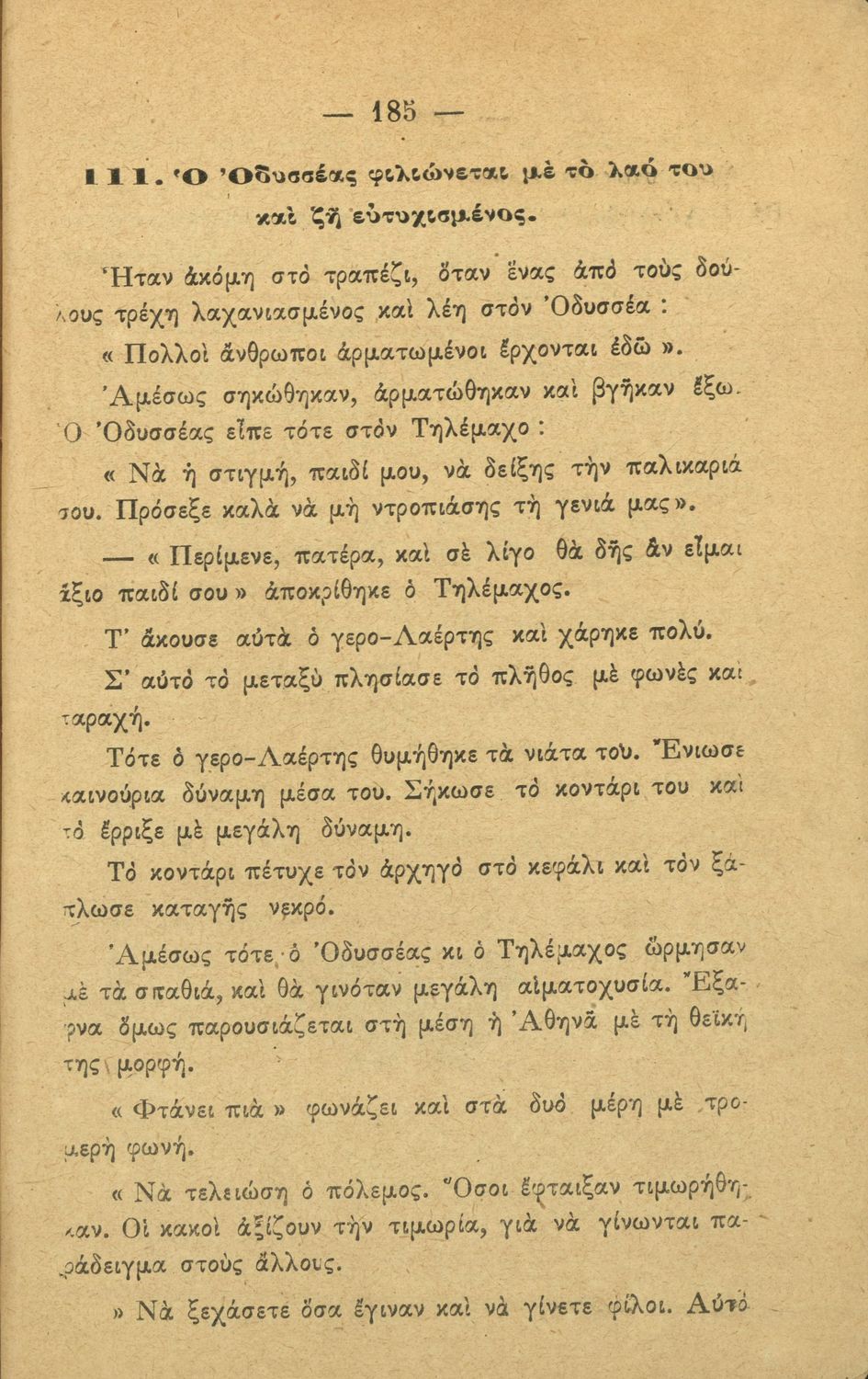 Αναγνωστικό Γ΄ Δημοτικού που εξιστορεί τις περιπέτειες του Οδυσσέα από τον Τρωικό Πόλεμο ως την επιστροφή του στην Ιθάκη.