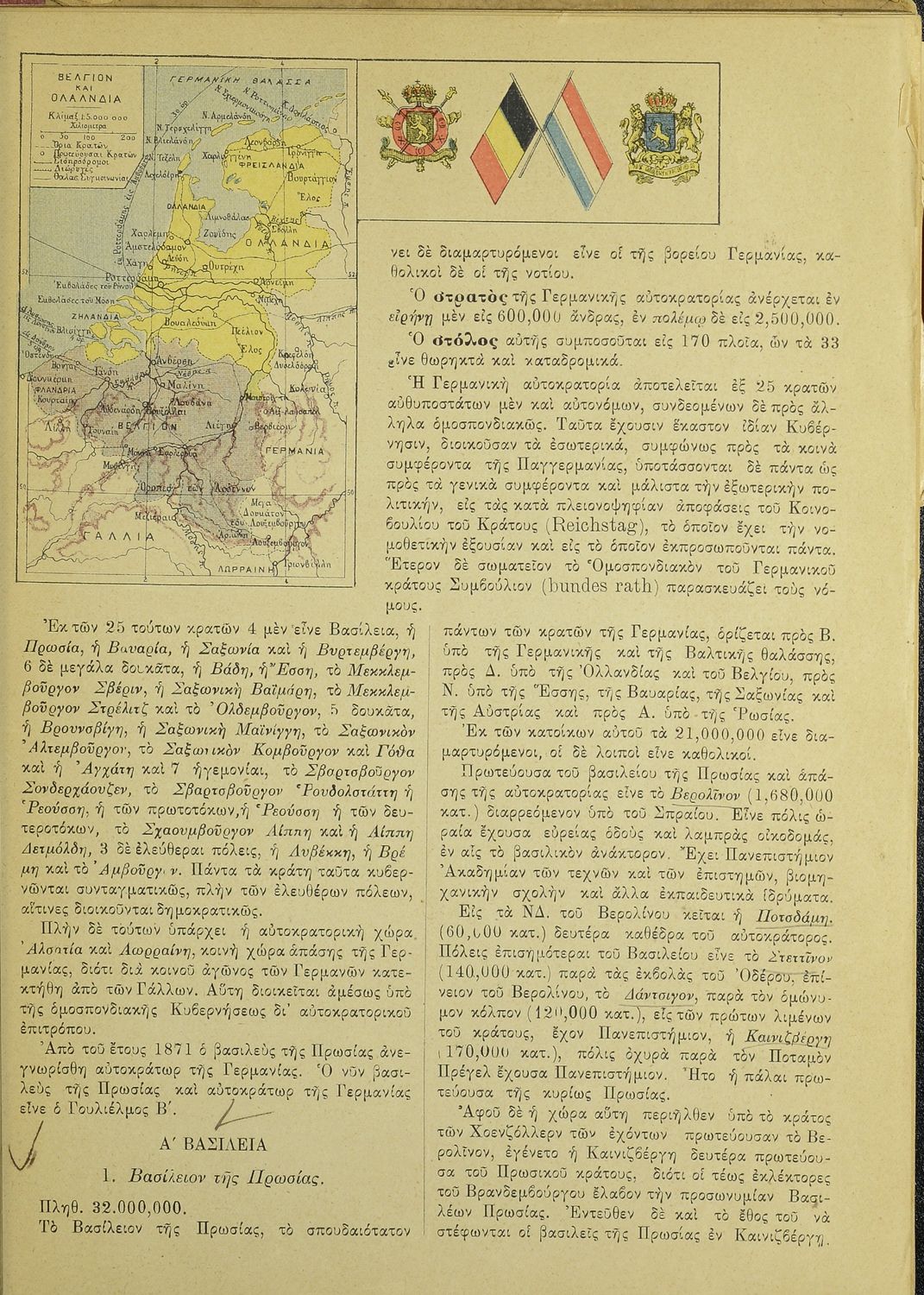 Σχολικό εγχειρίδιο Γεωγραφίας για τους μαθητές των Ελληνικών Σχολείων και Παρθεναγωγείων που περιλαμβάνει μια γενική επισκόπηση της πολιτικής, οικονομικής και φυσικής γεωγραφίας της Ελλάδας και ενδεικτικών ...