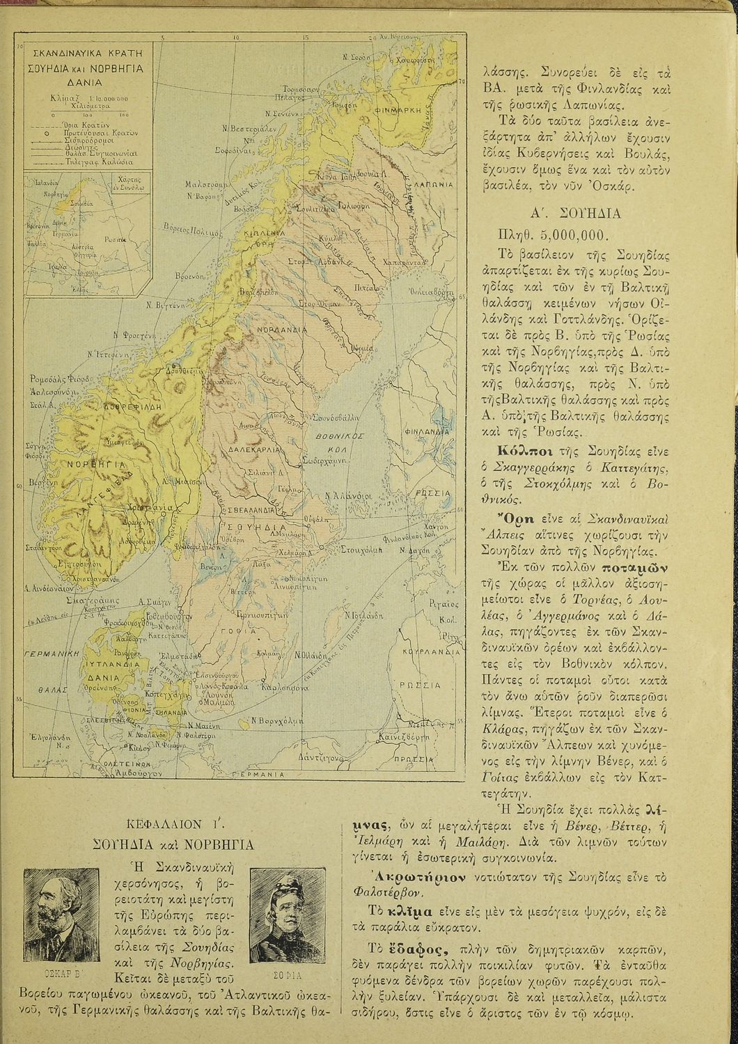 Σχολικό εγχειρίδιο Γεωγραφίας για τα Ελληνικά Σχολεία και τα Παρθεναγωγεία που περιλαμβάνει εισαγωγή στη φυσική, πολιτική και οικονομική γεωγραφία, και παρουσιάζει την Ελλάδα και ενδεικτικές χώρες και περιοχές