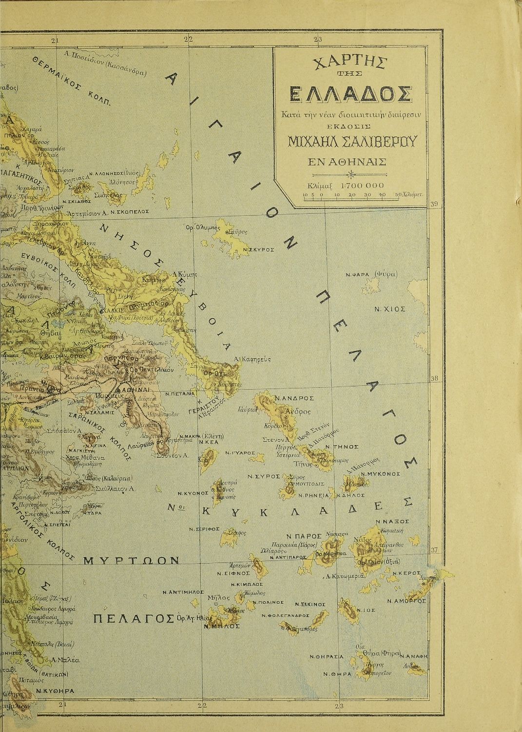 Σχολικό εγχειρίδιο Γεωγραφίας για τους μαθητές των Ελληνικών Σχολείων και Παρθεναγωγείων που περιλαμβάνει μια γενική επισκόπηση της πολιτικής, οικονομικής και φυσικής γεωγραφίας της Ελλάδας και ενδεικτικών ...