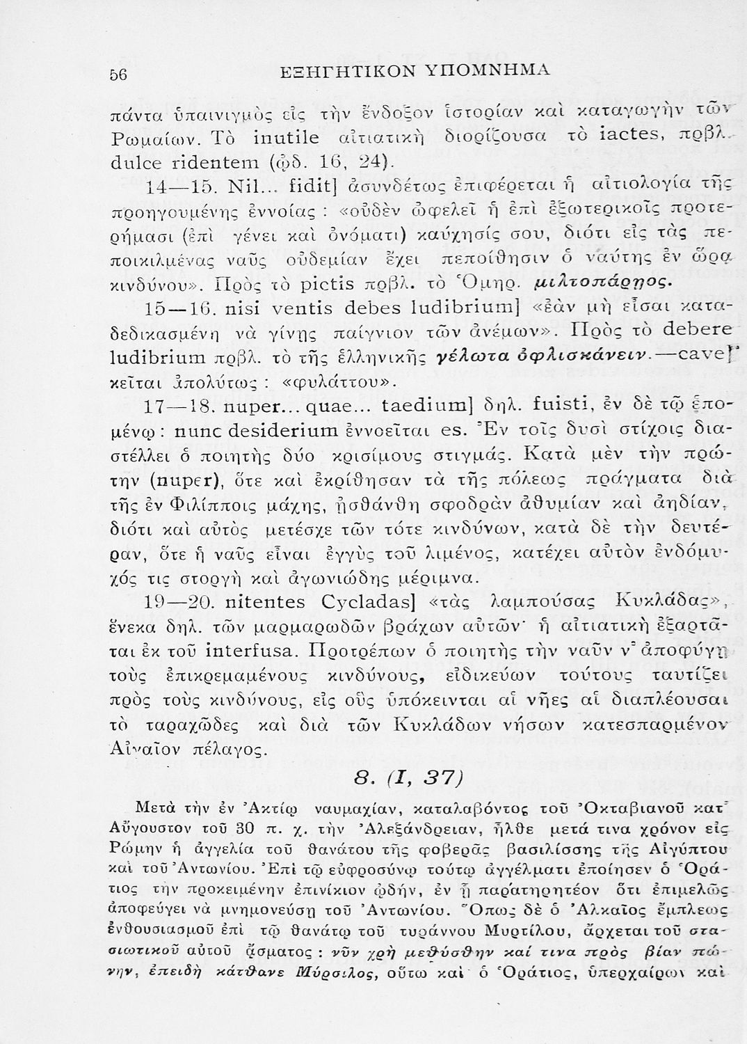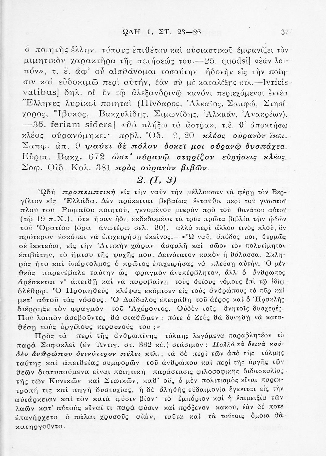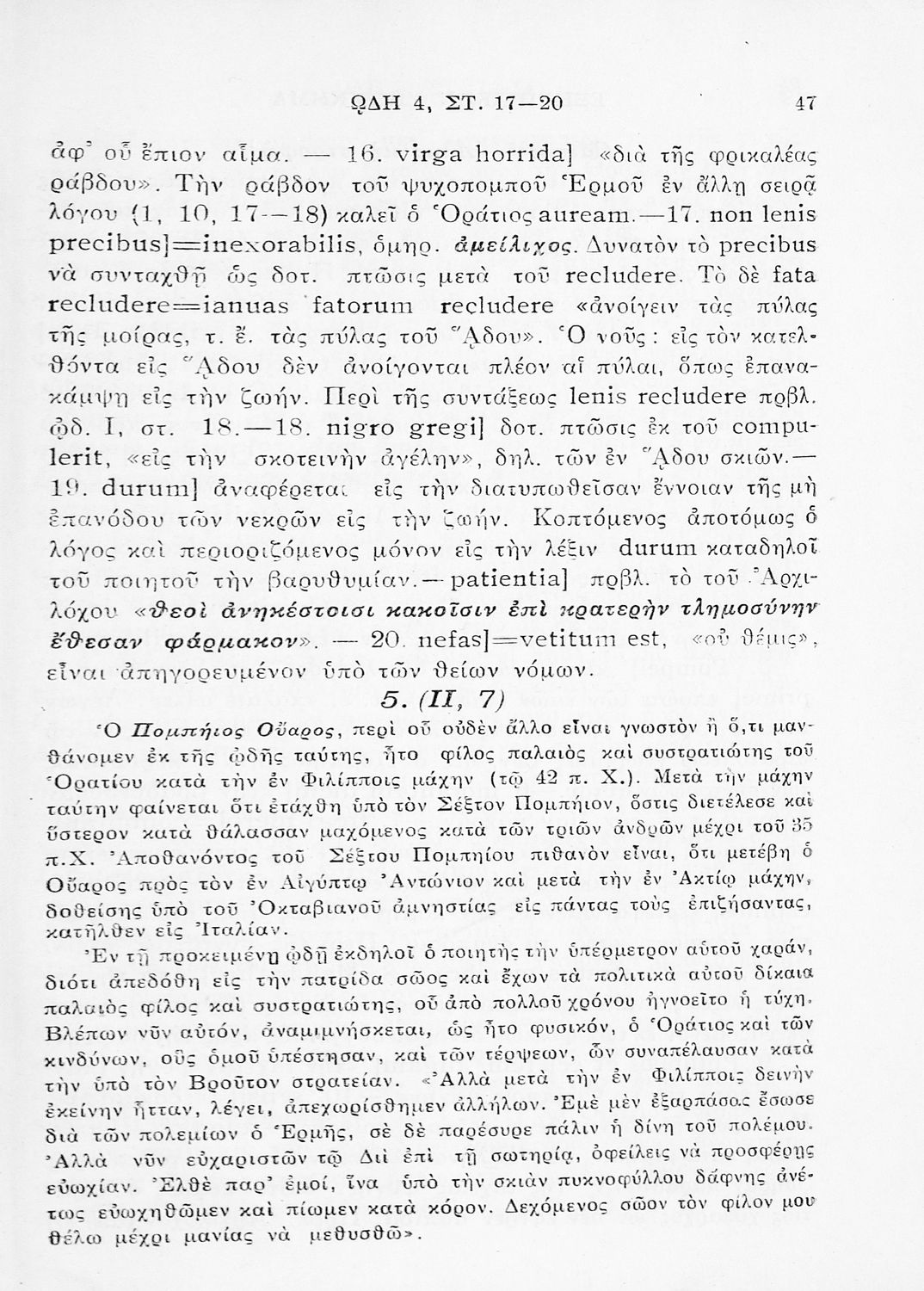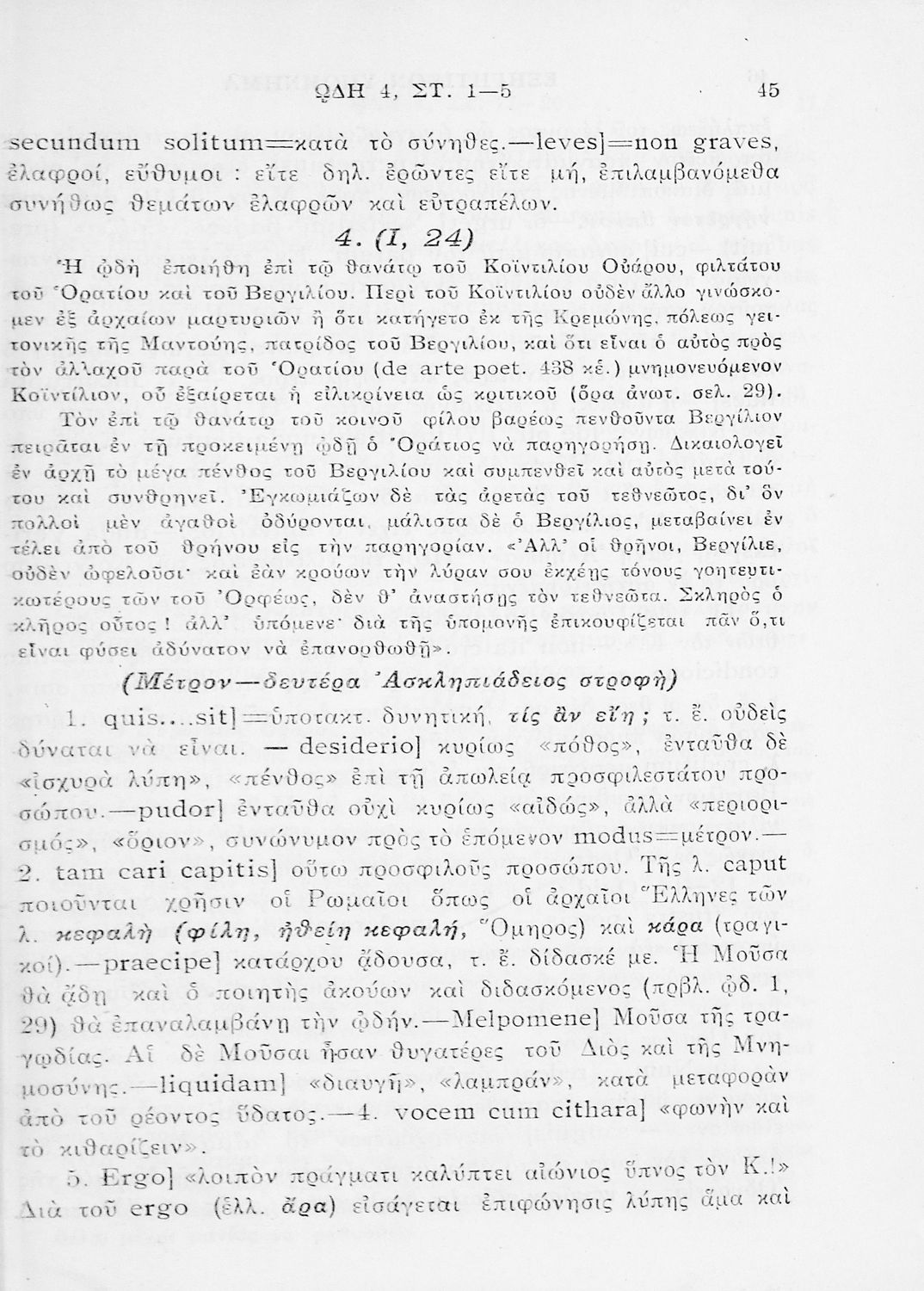 Σχολικό εγχειρίδιο Λατινικών ΣΤ΄ Γυμνασίου που περιέχει σύντομο βιογραφικό σημείωμα του Οράτιου, αποσπάσματα από τις Ωδές, ερμηνευτικό σημείωμα και μετρικό παράρτημα.