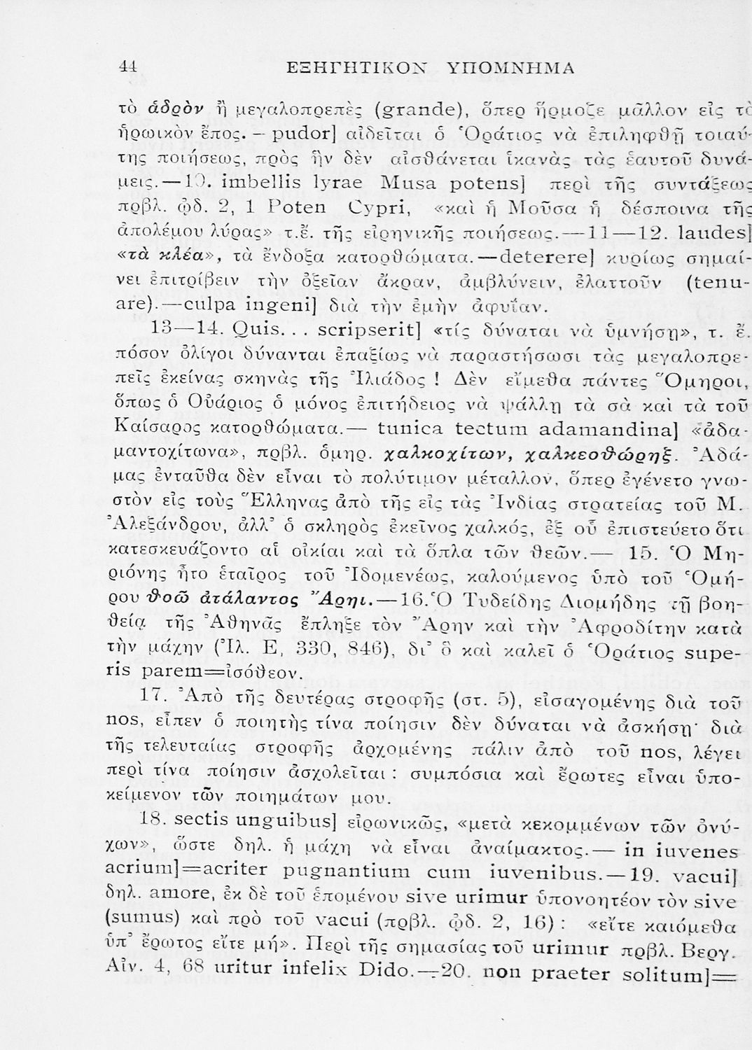 Κωδικός αναγνώρισης: 20-E0211 Τίτλος: Είκοσιν εκλεκταί ωδαί προς χρήσιν των μαθητών της ΣΤ΄ τάξεως του Γυμνασίου Συγγραφέας: Κουίντος Οράτιος Φλάκκος (Q. Horati Flacci), Γεώργιος Κ. Γρατσιάτος (σχόλια) Μέγεθος και υπόστρωμα: Σχολικό εγχειρίδιο, 19εκ., σκληρό εξώφυλλο, 106 σελίδες. |