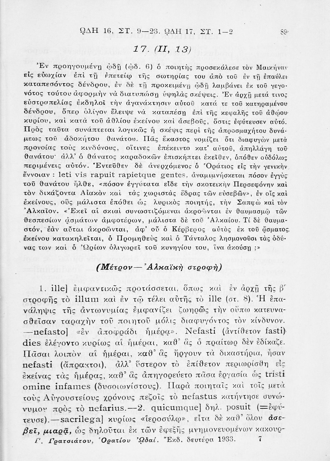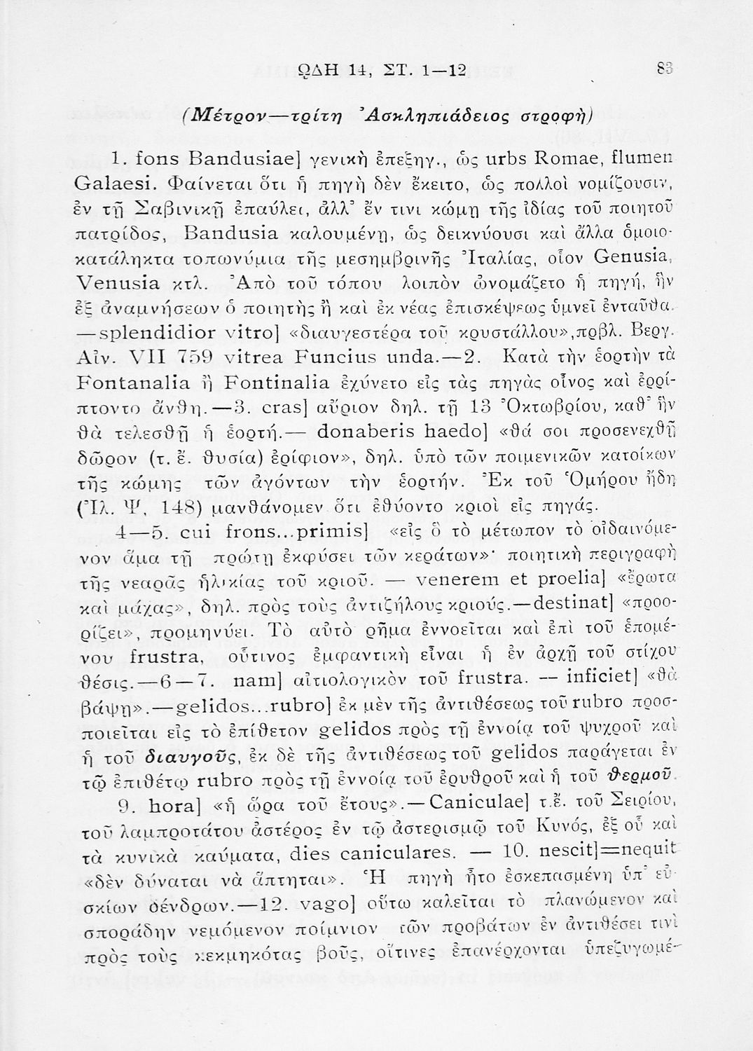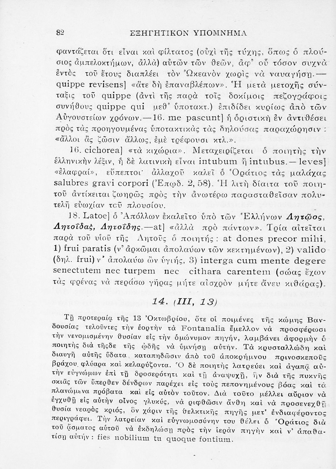 Σχολικό εγχειρίδιο Λατινικών ΣΤ΄ Γυμνασίου που περιέχει σύντομο βιογραφικό σημείωμα του Οράτιου, αποσπάσματα από τις Ωδές, ερμηνευτικό σημείωμα και μετρικό παράρτημα.