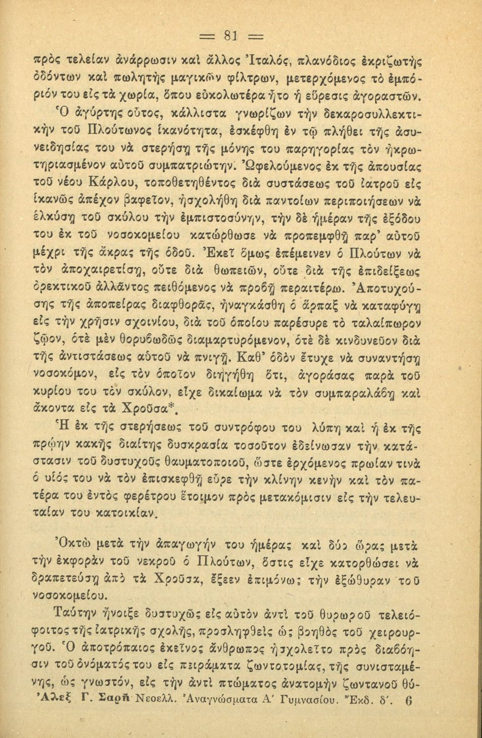 Νεοελληνικά αναγνώσματα διά τους μαθητάς της Α΄ τάξεως των Τετραταξίων Γυμνασίων και της αντιστοίχου τάξεως των λοιπών σχολείων της Μέσης Εκπαιδεύσεως