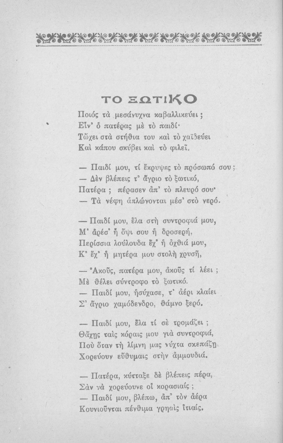 LDR 01577 2200193 4500 035 ## _a20-E0222 040 ## _aΚΕΝΕΚ - Εταιρεία Σπουδών Νεοελληνικού Πολιτισμού και Παιδείας 041 ## _ael 100 ## _aΙωάννης Ν. Σιδέρης 110 ## _aE0222 245 0# _aΕκλογή αναγνωσμάτων εκ ξένων λογοτεχνιών εν μεταφράσει προς χρήσιν της Γ΄ τάξεως των Τριτάξιων Διδασκαλείων αμφοτέρων των φύλων και των Μονοτάξιων Διδασκαλείων έτι δε της Γ΄ και Δ΄ τάξεως των Γυμνασίων μετά βιογραφικών σημειώσεων και εικόνων 260 ## _aΑθήνα _bΙωάννης Ν. Σιδέρης _c1925 300 ## _a210 _bΣκίτσα (ασπρόμαυρα) _c19 520 ## _aΣχολικό εγχειρίδιο Νέων Ελληνικών για τα Διδασκαλεία και τις Γ΄ και Δ΄ Γυμνασίου που περιλαμβάνει πεζά και ποιήματα Ευρωπαίων συγγραφέων μεταφρασμένα στα ελληνικά. 521 ## _aΓ' Τριταξίου Διδασκαλείου / Μονοτάξια Διδασκαλεία / Γ' Γυμνασίου / Δ' Γυμνασίου 522 ## _aΕλλάδα 546 ## _aΚαθαρεύουσα 563 ## _aΣκληρό Εξώφυλλο 650 #4 _aΓκαίτε _aΔάντης _aΘερβάντες _aΜολιέρος _aΣαίξπηρ _aΤουργένιεφ