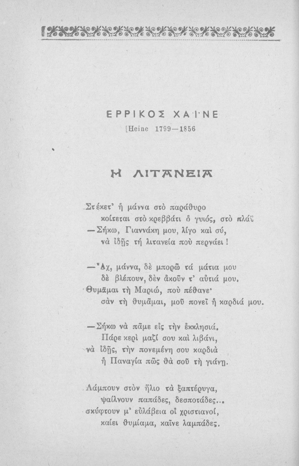 Σχολικό εγχειρίδιο Νέων Ελληνικών για τα Διδασκαλεία και τις Γ΄ και Δ΄ Γυμνασίου που περιλαμβάνει πεζά και ποιήματα Ευρωπαίων συγγραφέων μεταφρασμένα στα ελληνικά.