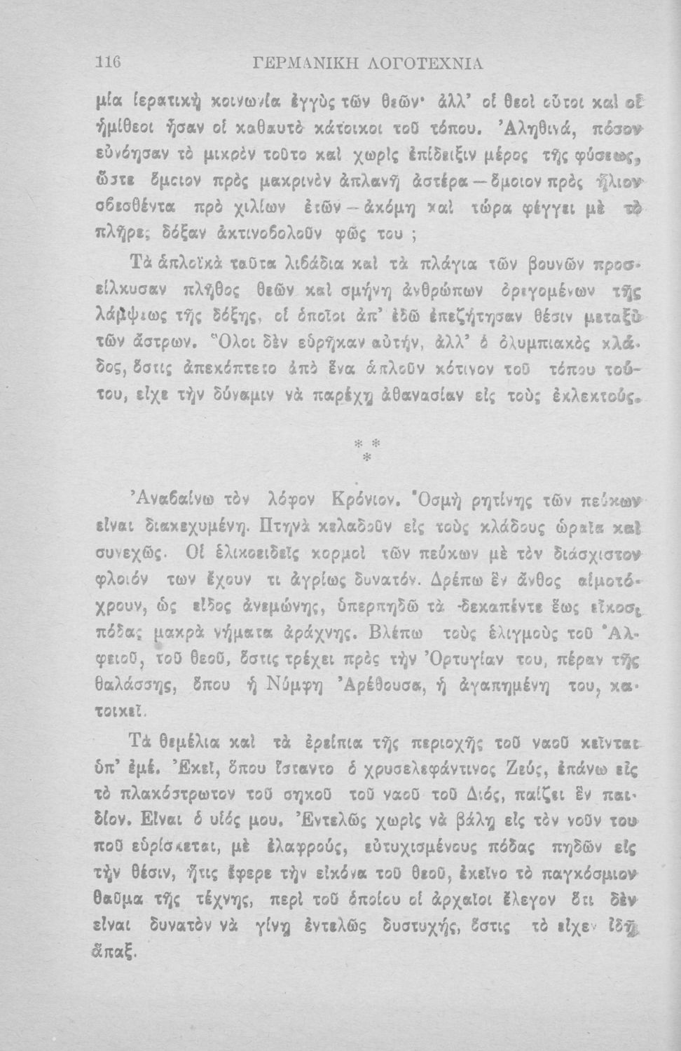 Βαθμίδα εκπαίδευσης: Δευτεροβάθμια Τάξη: Γ' Τριταξίου Διδασκαλείου / Μονοτάξια Διδασκαλεία / Γ' Γυμνασίου / Δ' Γυμνασίου Μάθημα: Νέα Ελληνικά Γλώσσα: Καθαρεύουσα Παρουσίαση περιεχομένου: Σχολικό εγχειρίδιο Νέων Ελληνικών για τα Διδασκαλεία και τις Γ΄ και Δ΄ Γυμνασίου που περιλαμβάνει πεζά και ποιήματα Ευρωπαίων συγγραφέων μεταφρασμένα στα ελληνικά. |