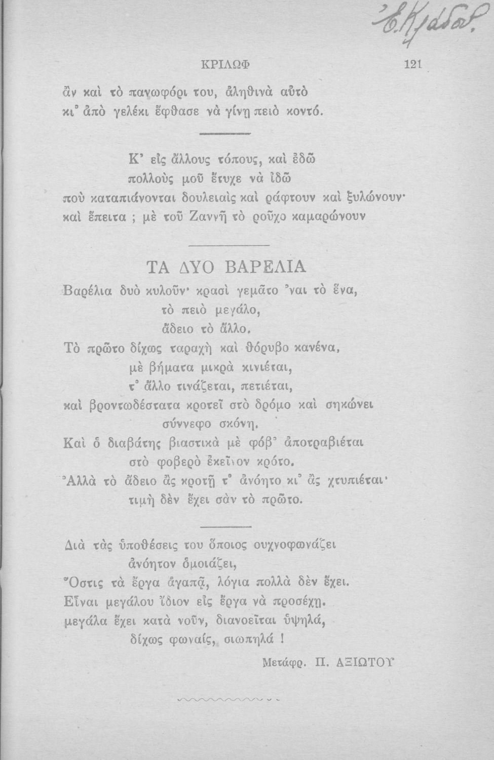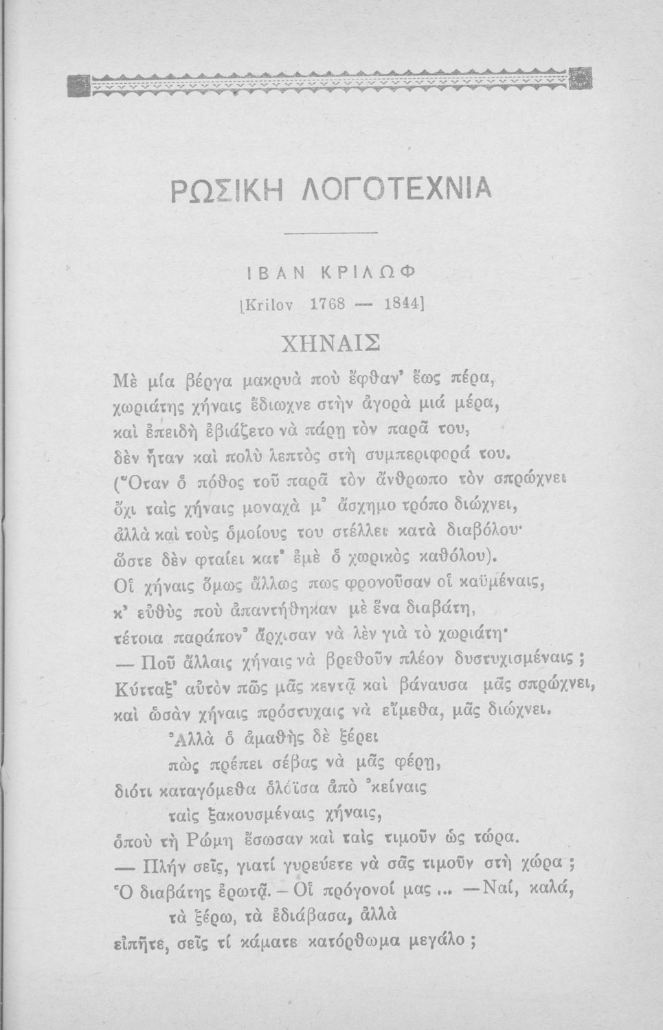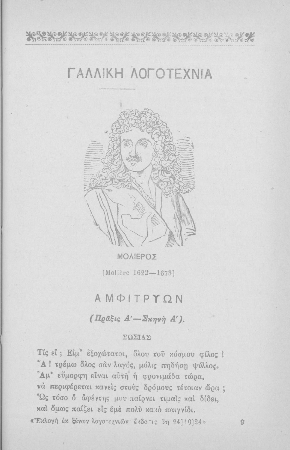 Εκλογή αναγνωσμάτων εκ ξένων λογοτεχνιών εν μεταφράσει προς χρήσιν της Γ΄ τάξεως των Τριτάξιων Διδασκαλείων αμφοτέρων των φύλων και των Μονοτάξιων Διδασκαλείων έτι δε της Γ΄ και Δ΄ τάξεως των Γυμνασίων μετά βιογραφικών σημειώσεων και εικόνων