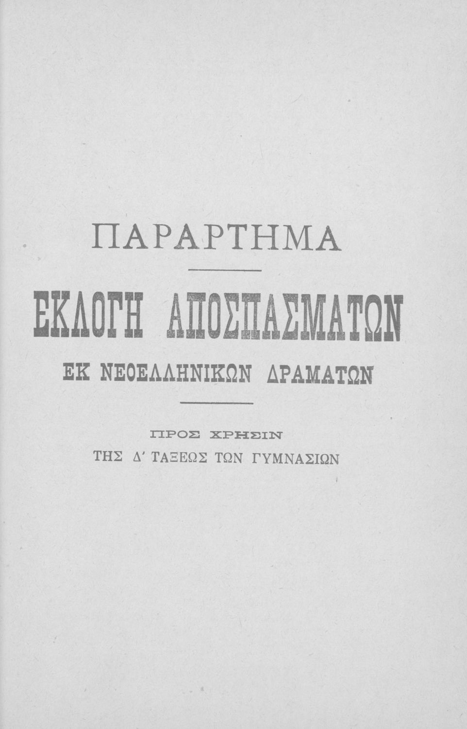 Τάξη:  Γ' Τριταξίου Διδασκαλείου / Μονοτάξια Διδασκαλεία / Γ' Γυμνασίου / Δ' Γυμνασίου