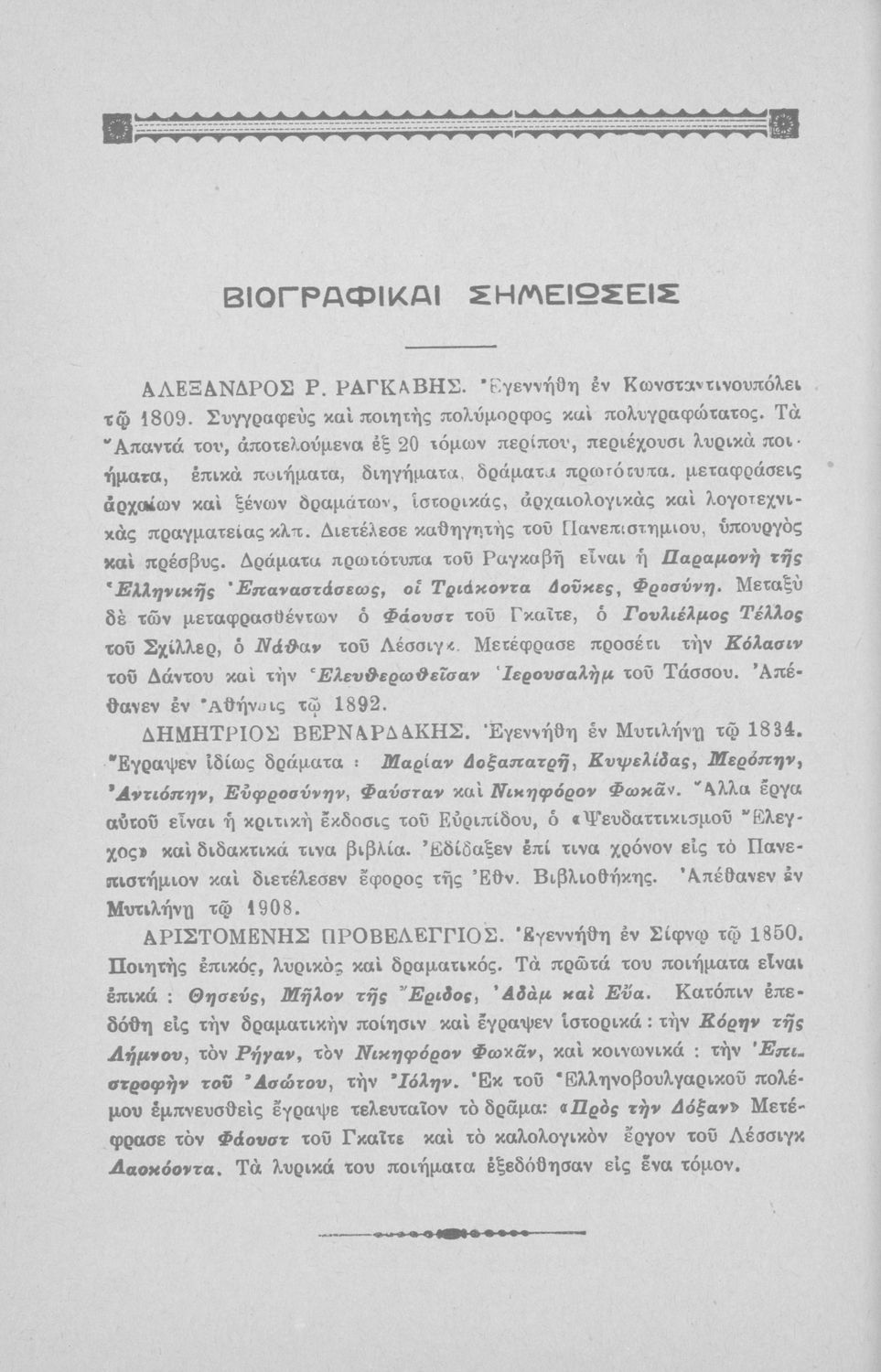 Εκλογή αναγνωσμάτων εκ ξένων λογοτεχνιών εν μεταφράσει προς χρήσιν της Γ΄ τάξεως των Τριτάξιων Διδασκαλείων αμφοτέρων των φύλων και των Μονοτάξιων Διδασκαλείων έτι δε της Γ΄ και Δ΄ τάξεως των Γυμνασίων μετά βιογραφικών σημειώσεων και εικόνων