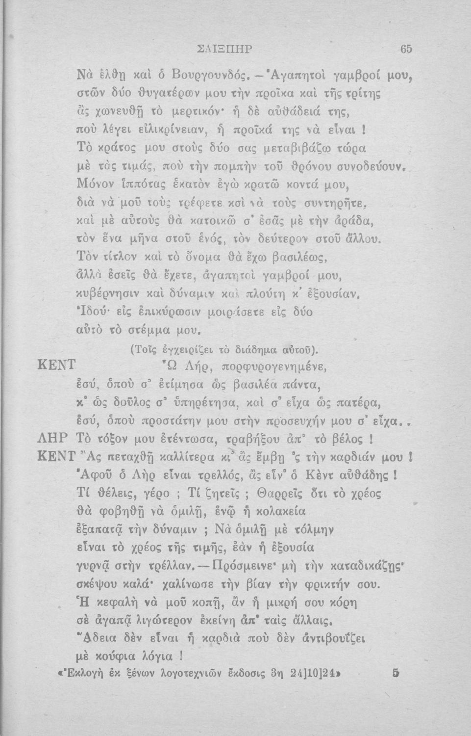 Εκλογή αναγνωσμάτων εκ ξένων λογοτεχνιών εν μεταφράσει προς χρήσιν της Γ΄ τάξεως των Τριτάξιων Διδασκαλείων αμφοτέρων των φύλων και των Μονοτάξιων Διδασκαλείων έτι δε της Γ΄ και Δ΄ τάξεως των Γυμνασίων μετά βιογραφικών σημειώσεων και εικόνων