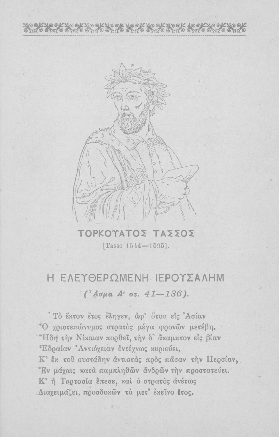 Βαθμίδα εκπαίδευσης: Δευτεροβάθμια Τάξη: Γ' Τριταξίου Διδασκαλείου / Μονοτάξια Διδασκαλεία / Γ' Γυμνασίου / Δ' Γυμνασίου Μάθημα: Νέα Ελληνικά Γλώσσα: Καθαρεύουσα Παρουσίαση περιεχομένου: Σχολικό εγχειρίδιο Νέων Ελληνικών για τα Διδασκαλεία και τις Γ΄ και Δ΄ Γυμνασίου που περιλαμβάνει πεζά και ποιήματα Ευρωπαίων συγγραφέων μεταφρασμένα στα ελληνικά. |