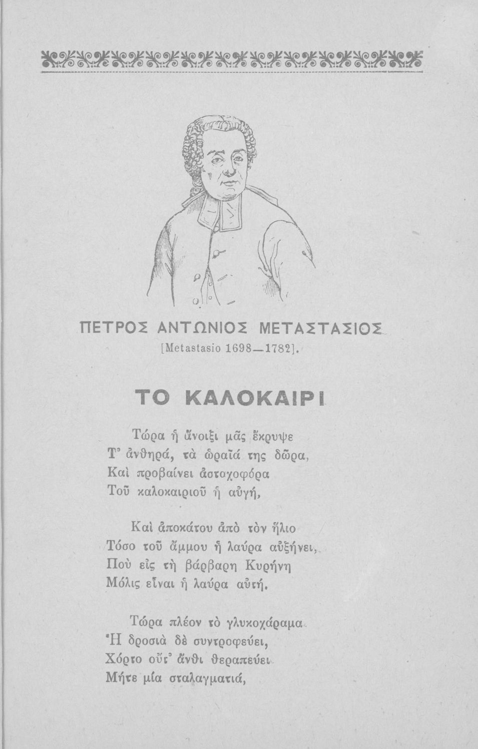 LDR 01577 2200193 4500 035 ## _a20-E0222 040 ## _aΚΕΝΕΚ - Εταιρεία Σπουδών Νεοελληνικού Πολιτισμού και Παιδείας 041 ## _ael 100 ## _aΙωάννης Ν. Σιδέρης 110 ## _aE0222 245 0# _aΕκλογή αναγνωσμάτων εκ ξένων λογοτεχνιών εν μεταφράσει προς χρήσιν της Γ΄ τάξεως των Τριτάξιων Διδασκαλείων αμφοτέρων των φύλων και των Μονοτάξιων Διδασκαλείων έτι δε της Γ΄ και Δ΄ τάξεως των Γυμνασίων μετά βιογραφικών σημειώσεων και εικόνων 260 ## _aΑθήνα _bΙωάννης Ν. Σιδέρης _c1925 300 ## _a210 _bΣκίτσα (ασπρόμαυρα) _c19 520 ## _aΣχολικό εγχειρίδιο Νέων Ελληνικών για τα Διδασκαλεία και τις Γ΄ και Δ΄ Γυμνασίου που περιλαμβάνει πεζά και ποιήματα Ευρωπαίων συγγραφέων μεταφρασμένα στα ελληνικά. 521 ## _aΓ' Τριταξίου Διδασκαλείου / Μονοτάξια Διδασκαλεία / Γ' Γυμνασίου / Δ' Γυμνασίου 522 ## _aΕλλάδα 546 ## _aΚαθαρεύουσα 563 ## _aΣκληρό Εξώφυλλο 650 #4 _aΓκαίτε _aΔάντης _aΘερβάντες _aΜολιέρος _aΣαίξπηρ _aΤουργένιεφ