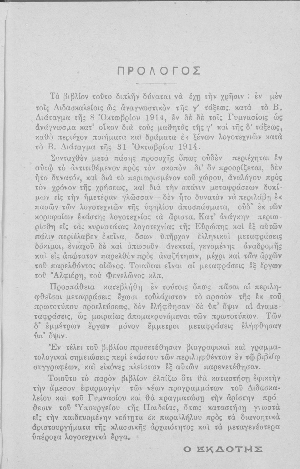 Σχολικό εγχειρίδιο Νέων Ελληνικών για τα Διδασκαλεία και τις Γ΄ και Δ΄ Γυμνασίου που περιλαμβάνει πεζά και ποιήματα Ευρωπαίων συγγραφέων μεταφρασμένα στα ελληνικά.