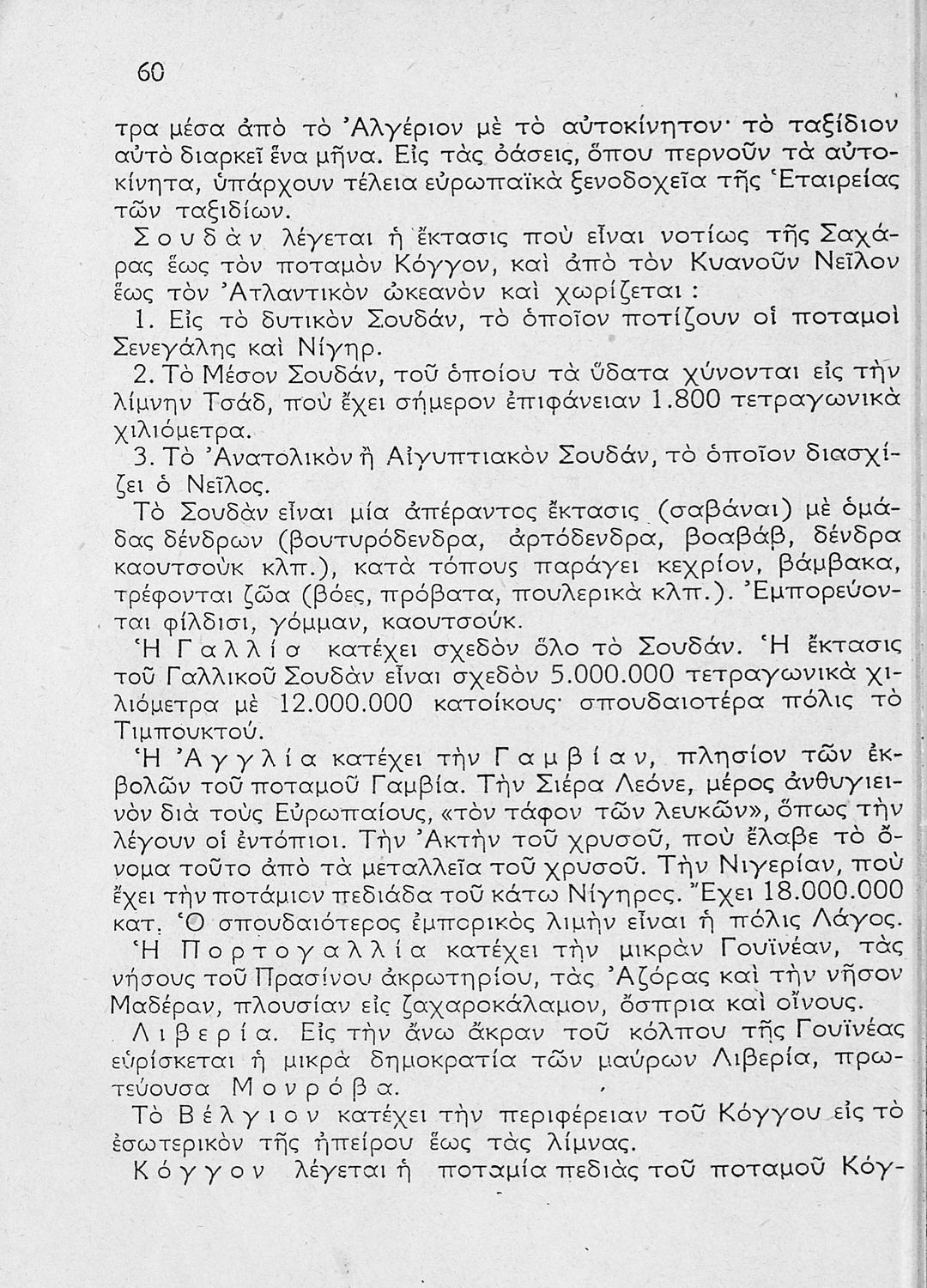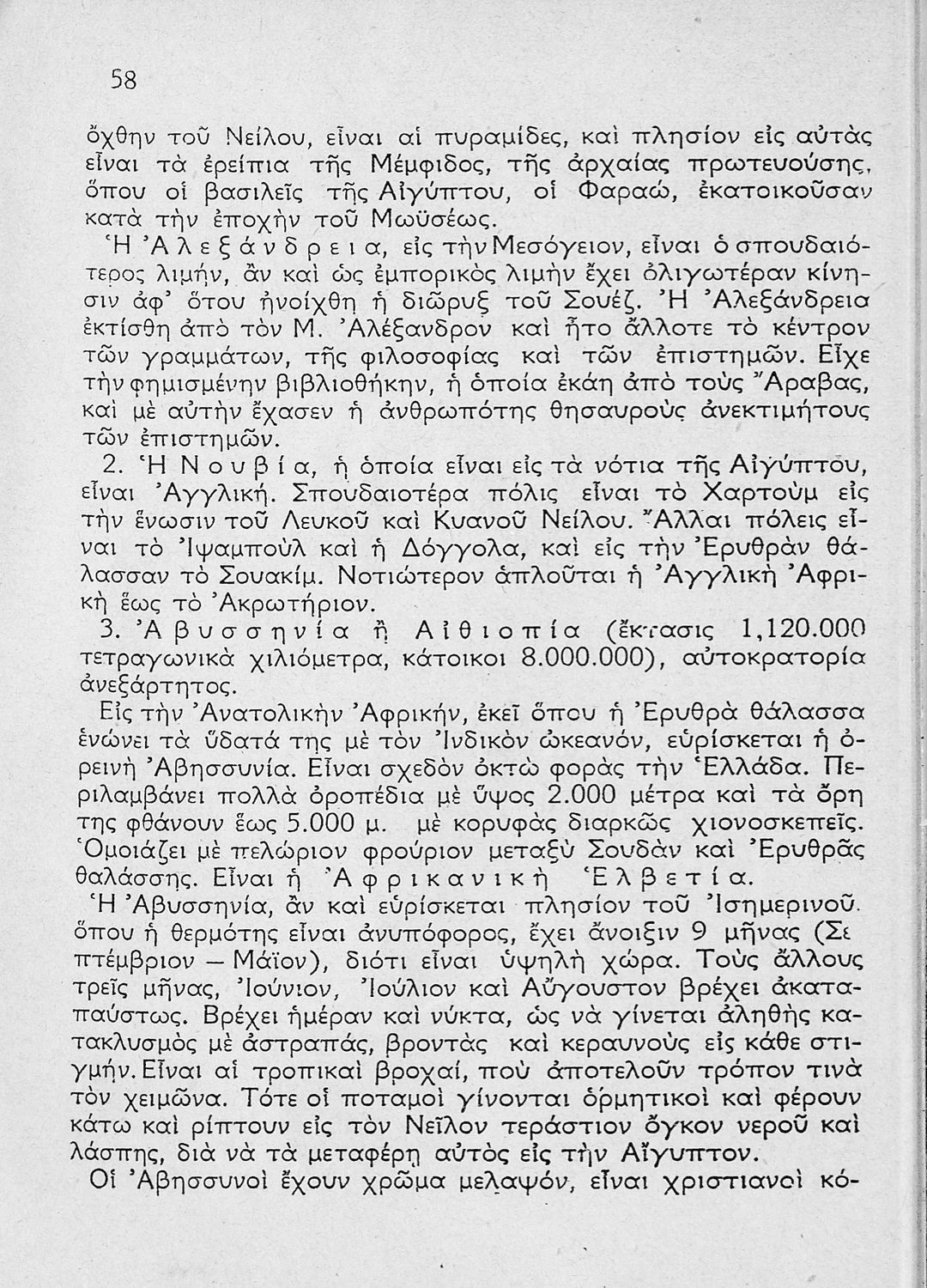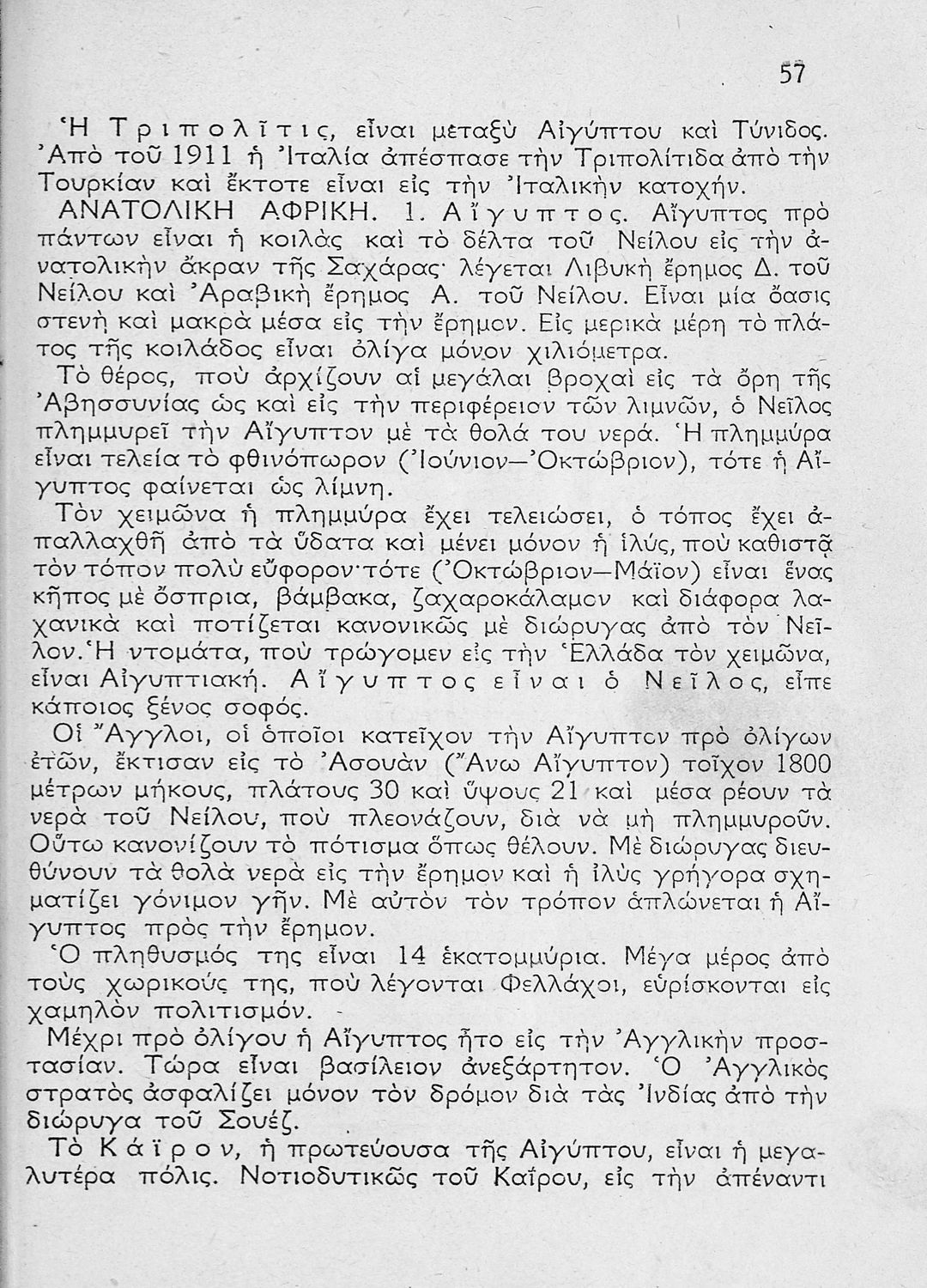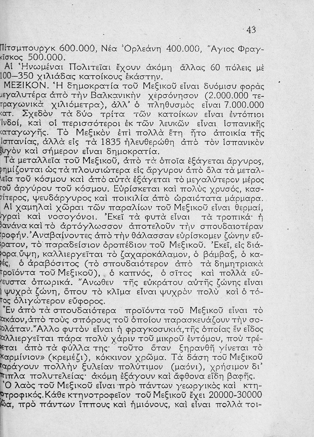 Μαθητικό βοήθημα Γεωγραφίας Ε΄ Δημοτικού που πραγματεύεται την σύσταση και δομή της Γης, τις ηπείρους πλην της Ευρώπης και τις μεγαλύτερες πληθυσμιακά πόλεις κατά το 1920. Περιέχει και συγκριτική μελέτη για την παραγωγή και διάθεση προϊόντων μεταξύ των κρατών και πληροφορίες για τους μεγάλους θαλασσοπόρους και εξερευνητές.