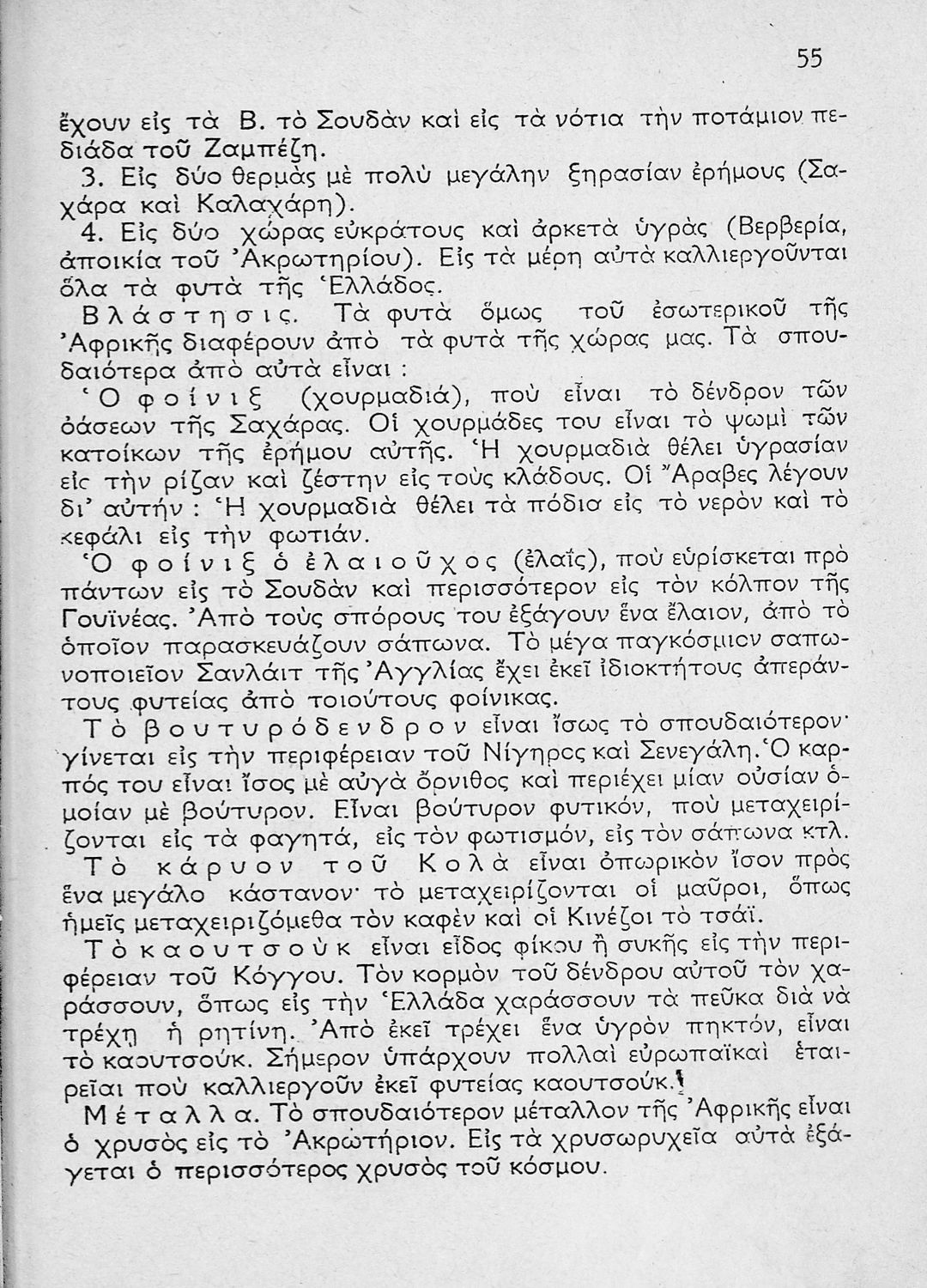LDR 01427 2200193 4500 035 ## _a20-E0233 040 ## _aΚΕΝΕΚ - Εταιρεία Σπουδών Νεοελληνικού Πολιτισμού και Παιδείας 041 ## _ael 100 ## _aΔ. Δημητράκος _aΔημ. Τσαμασφύρος (επιμ.) 110 ## _aE0233 245 0# _aΓεωγραφία διά την πέμπτην τάξιν του Δημοτικού Σχολείου 260 ## _aΑθήνα _bΔημητράκος _c1934 300 ## _a95 _bΣκίτσα (ασπρόμαυρα) _c17 520 ## _aΜαθητικό βοήθημα Γεωγραφίας Ε΄ Δημοτικού που πραγματεύεται την σύσταση και δομή της Γης, τις ηπείρους πλην της Ευρώπης και τις μεγαλύτερες πληθυσμιακά πόλεις κατά το 1920. Περιέχει και συγκριτική μελέτη για την παραγωγή και διάθεση προϊόντων μεταξύ των κρατών και πληροφορίες για τους μεγάλους θαλασσοπόρους και εξερευνητές. 521 ## _aΕ' Δημοτικού 522 ## _aΕλλάδα 546 ## _aΚαθαρεύουσα 563 ## _aΣκληρό Εξώφυλλο 650 #4 _aΑτμόσφαιρα _aΕμπόριο _aΕξερευνητές _aΉπειροι _aΘάλασσα _aΚλίμα
