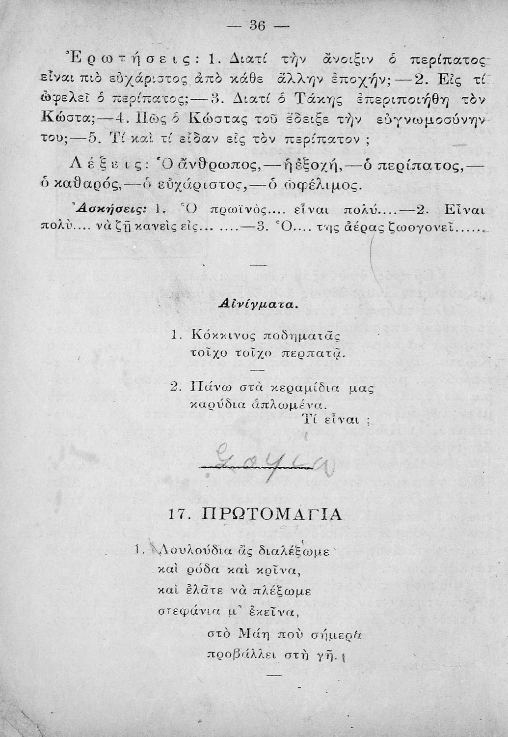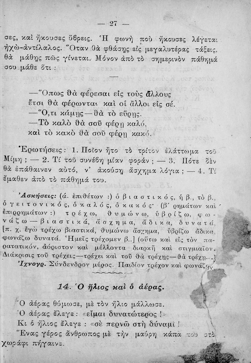 Τίτλος: Αναγνωσματάριον δια τους μαθητάς της Β΄ τάξεως του Δημοτικού Σχολείου