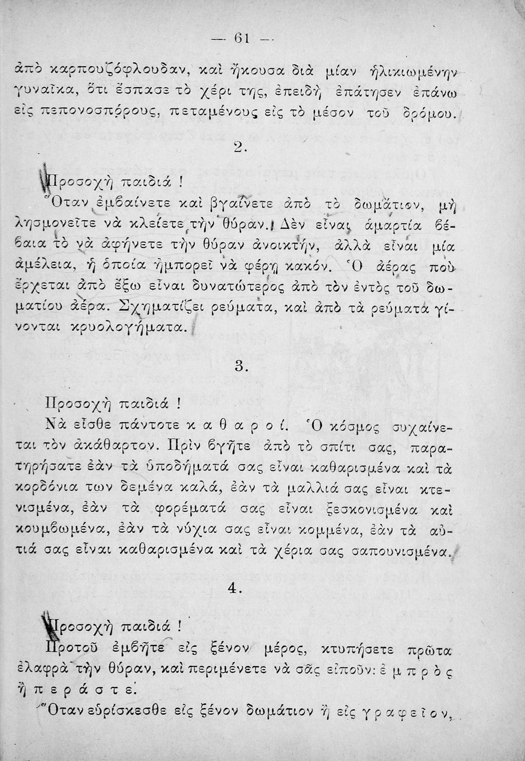 Αναγνωστικό Γ΄ Δημοτικού που περιλαμβάνει ποιήματα και πεζά με θέματα όπως η καλή και κακή συναναστροφή, η φρόνηση, η οκνηρία, η φιλανθρωπία και η πίστη στο Θεό