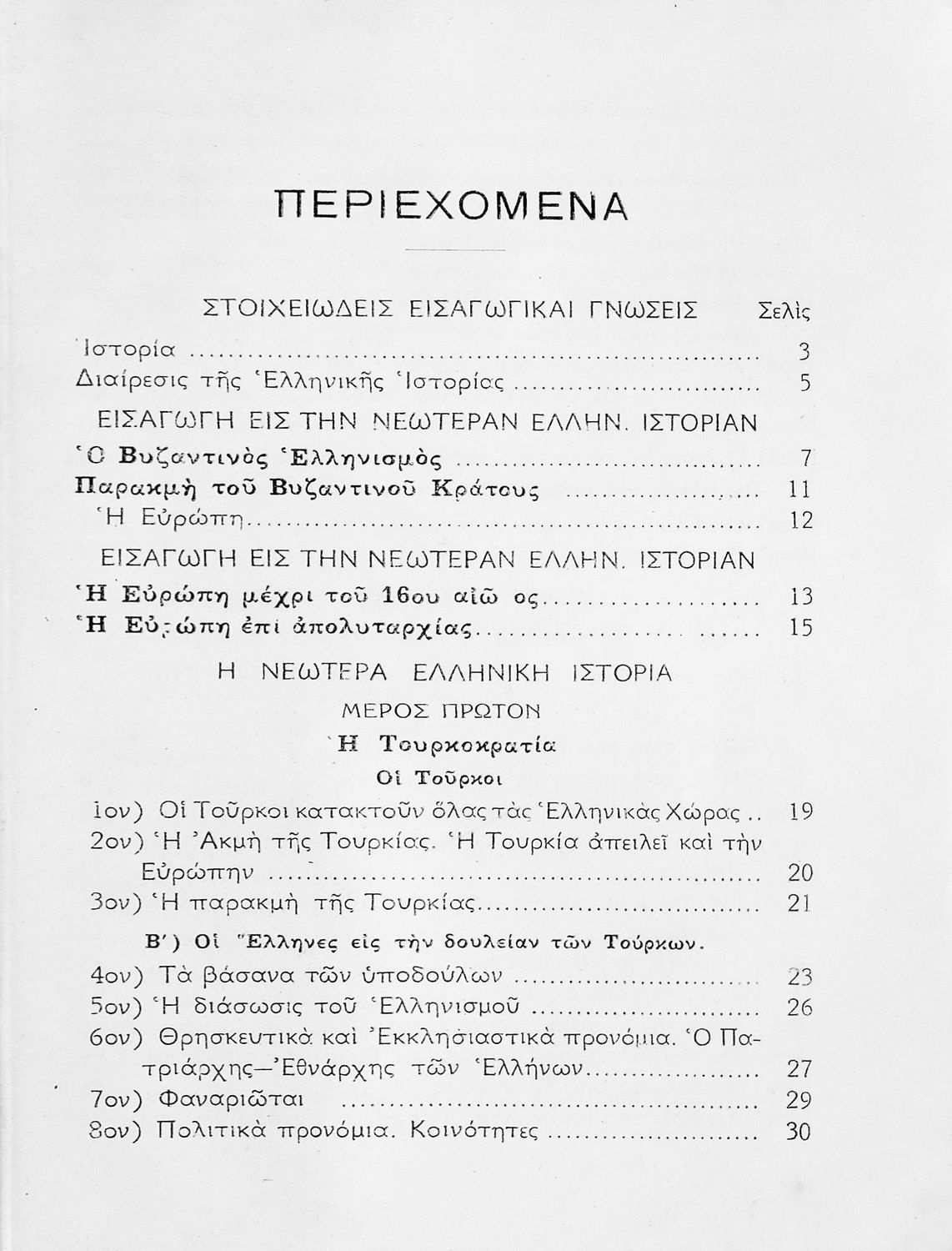 Βαθμίδα εκπαίδευσης: Πρωτοβάθμια Τάξη: ΣΤ' Δημοτικού Μάθημα: Ιστορία Γλώσσα: Καθαρεύουσα Παρουσίαση περιεχομένου: Σχολικό εγχειρίδιο Ιστορίας ΣΤ΄ Δημοτικού που περιλαμβάνει την περίοδο από την Τουρκοκρατία και την Ελληνική Επανάσταση ως τους Βαλκανικούς Πολέμους και την Μικρασιατική καταστροφή. |