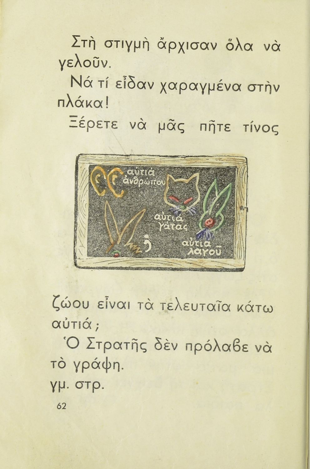 Αναγνωστικό Α΄ Δημοτικού που περιλαμβάνει το ελληνικό αλφάβητο, εικόνες, συλλαβές και μικρές φράσεις και προτάσεις.