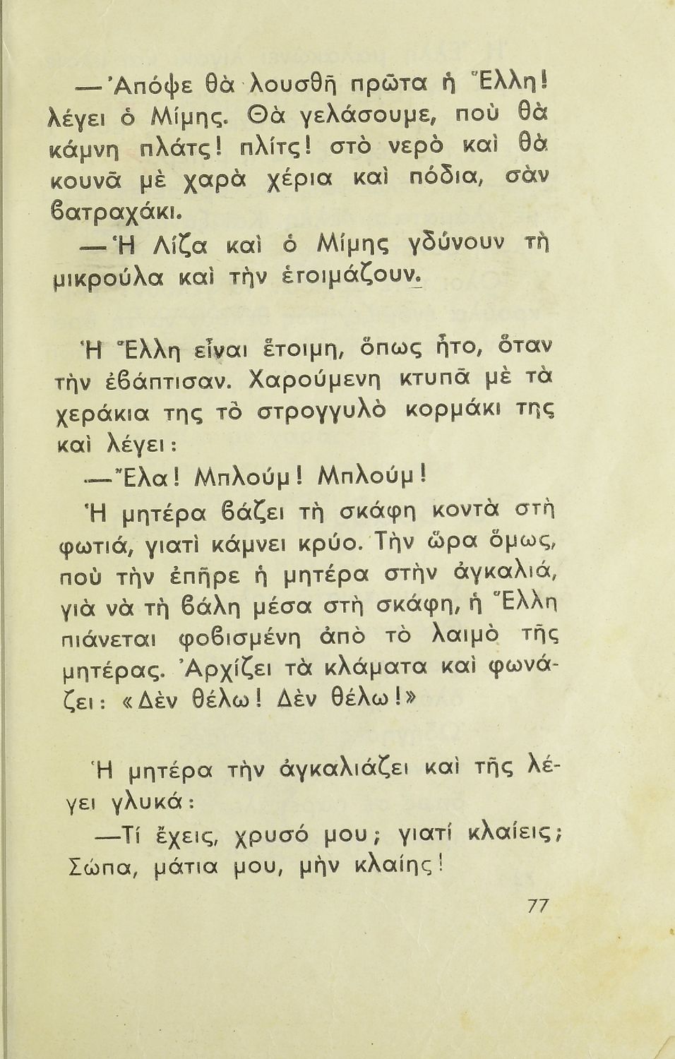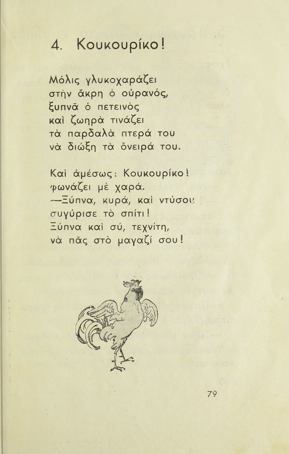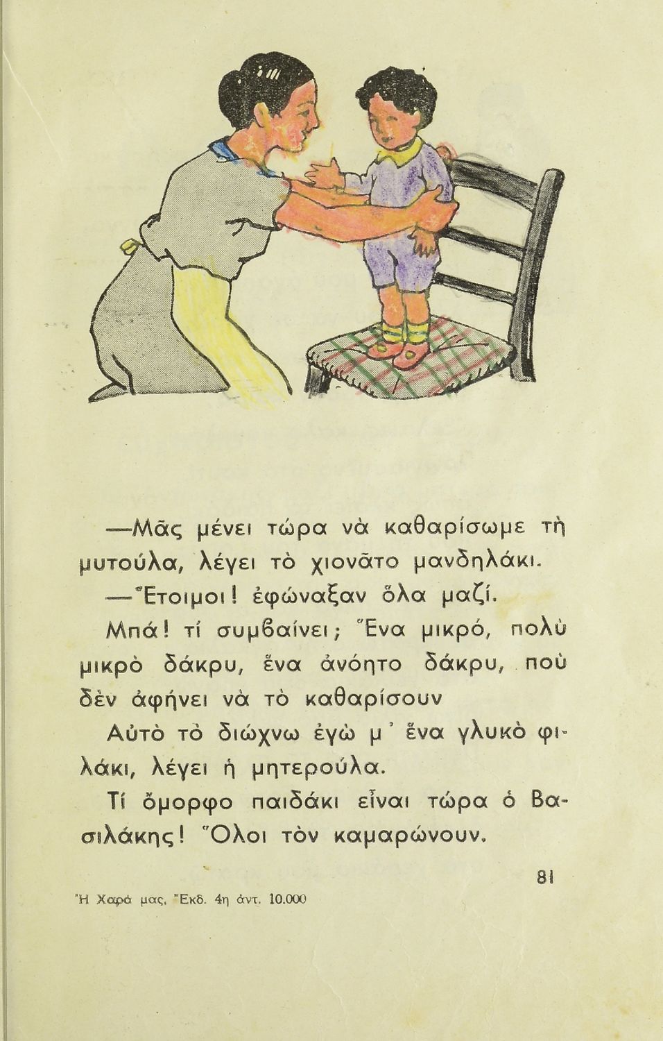 Αναγνωστικό Α΄ Δημοτικού που περιλαμβάνει κείμενα από την καθημερινότητα των παιδιών, τη θρησκευτική παράδοση, τα επαγγέλματα και τις ασχολίες των ανθρώπων, τα τοπικά ήθη και έθιμα, την αγάπη για τα ζώα, τη φύση και την πατρίδα.