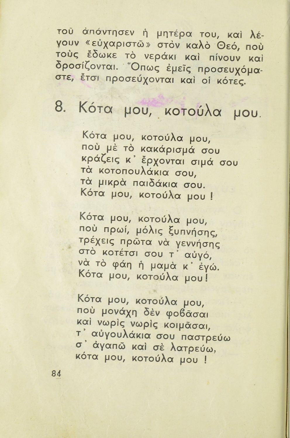 Αναγνωστικό Α΄ Δημοτικού που περιλαμβάνει ποιήματα και πεζά ηθοποιητικού περιεχομένου.