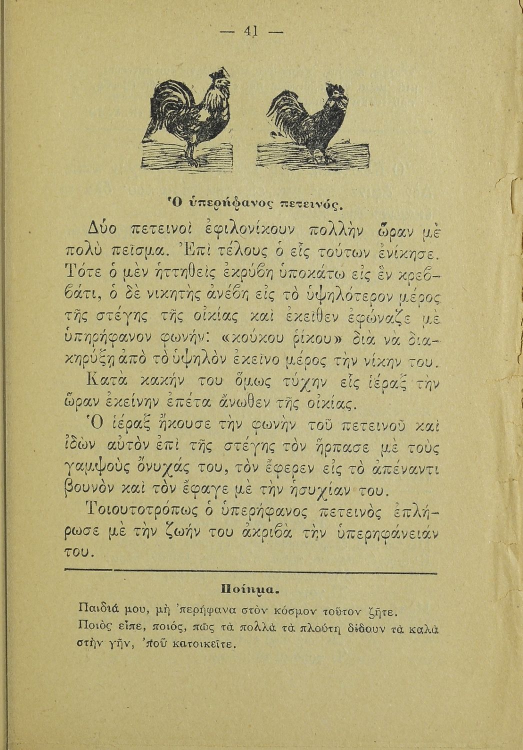 Αναγνωστικό Α΄ Δημοτικού που περιλαμβάνει ποιήματα και πεζά ηθοποιητικού περιεχομένου.