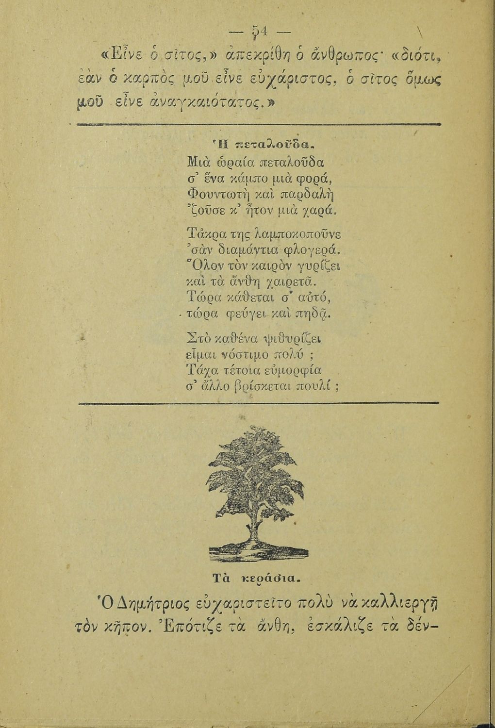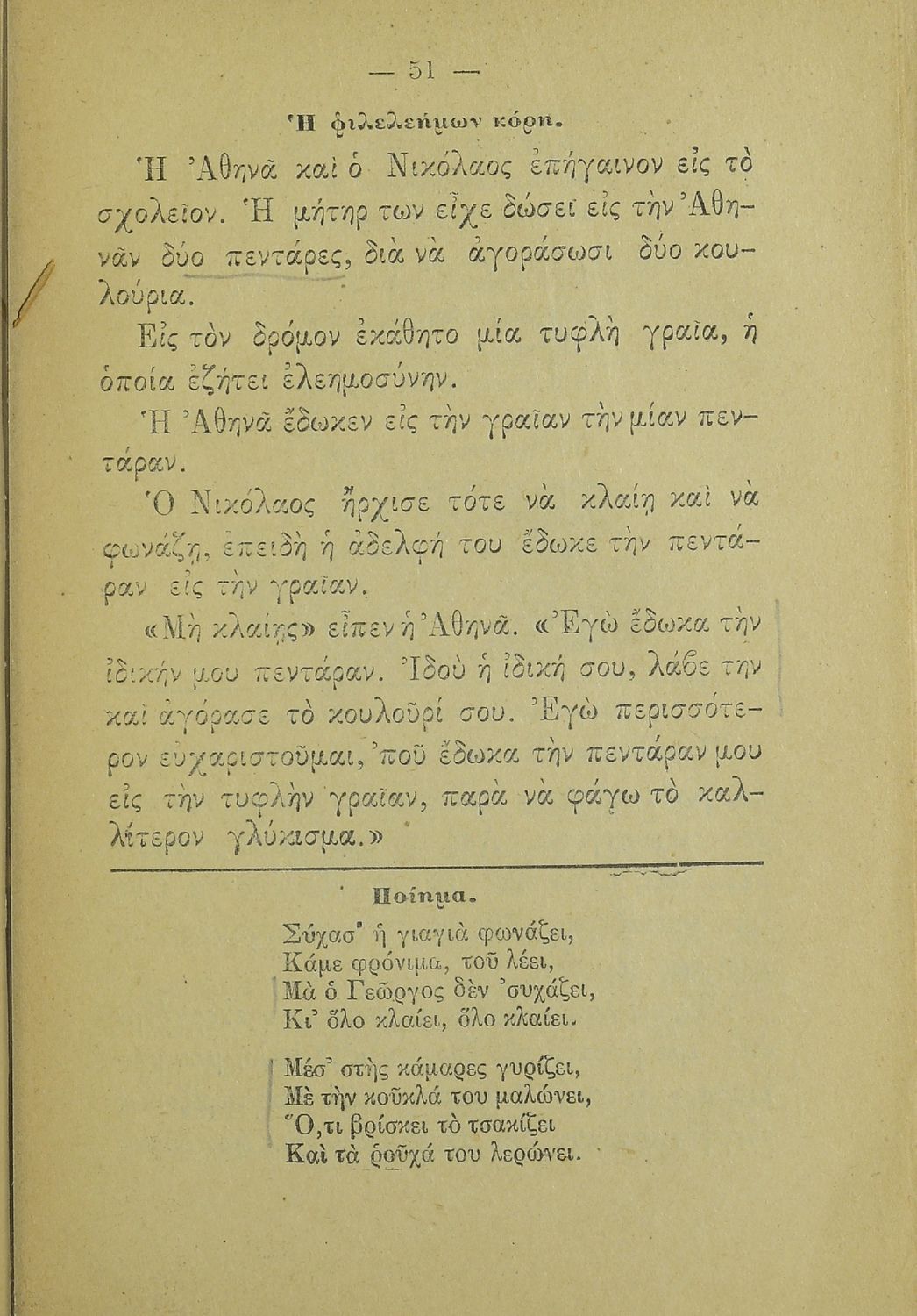 Αναγνωστικό Α΄ Δημοτικού που περιλαμβάνει ποιήματα και πεζά ηθοποιητικού περιεχομένου.