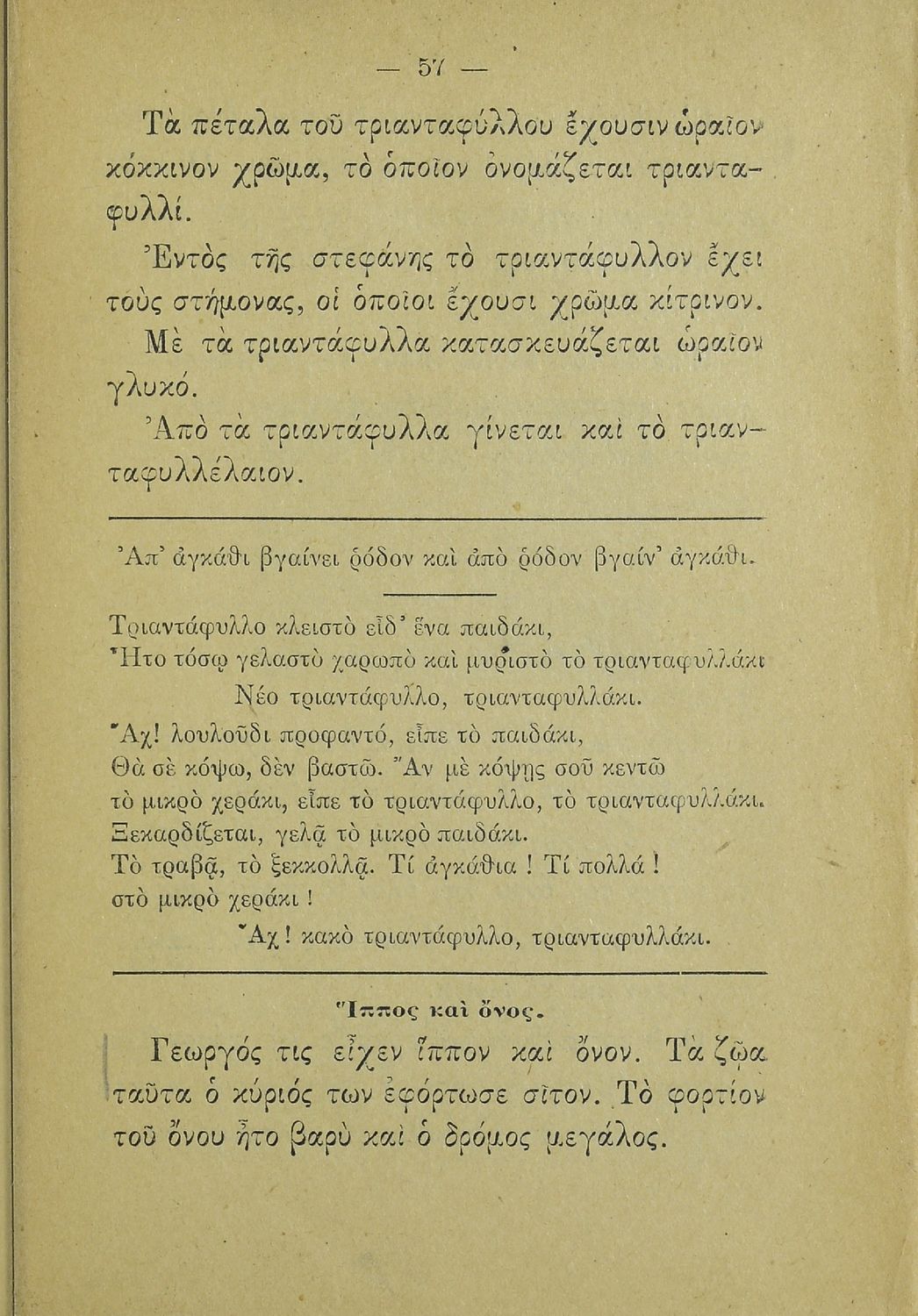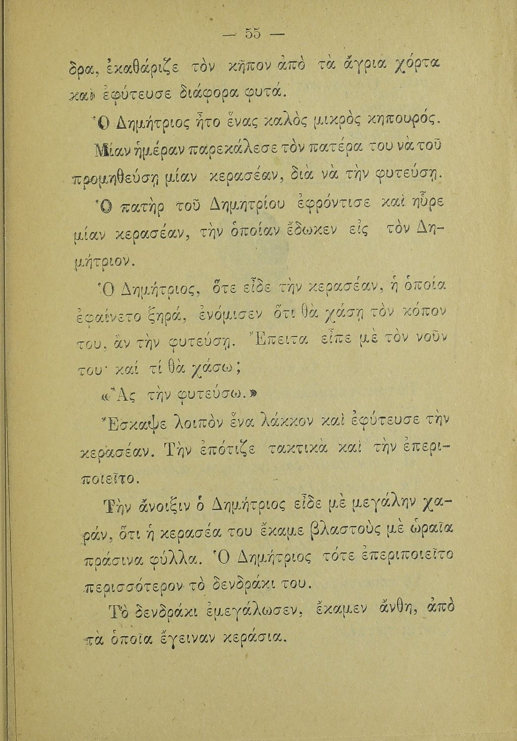 Αναγνωστικό Α΄ Δημοτικού που περιλαμβάνει κείμενα από την καθημερινότητα των παιδιών, τη θρησκευτική παράδοση, τα επαγγέλματα και τις ασχολίες των ανθρώπων, τα τοπικά ήθη και έθιμα, την αγάπη για τα ζώα, τη φύση και την πατρίδα.