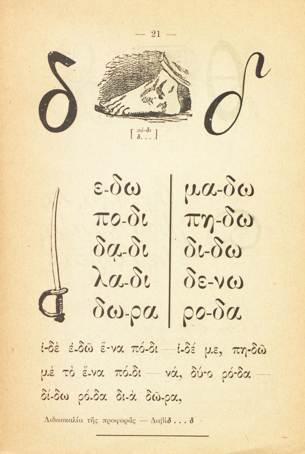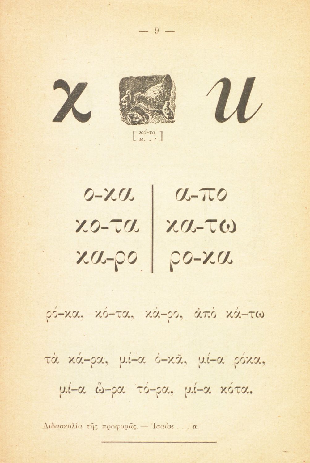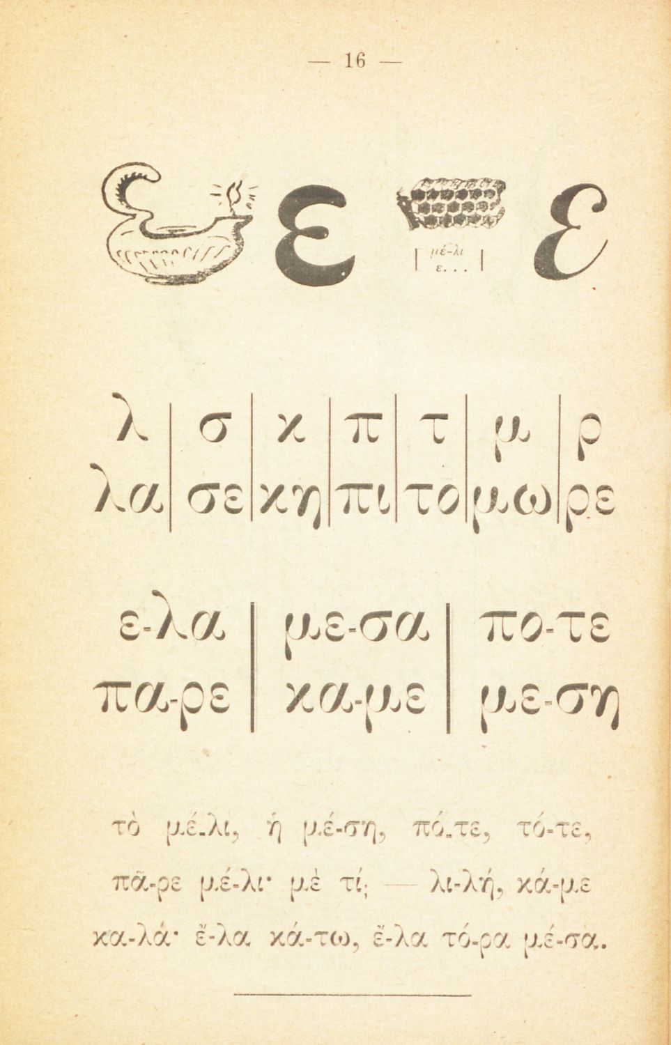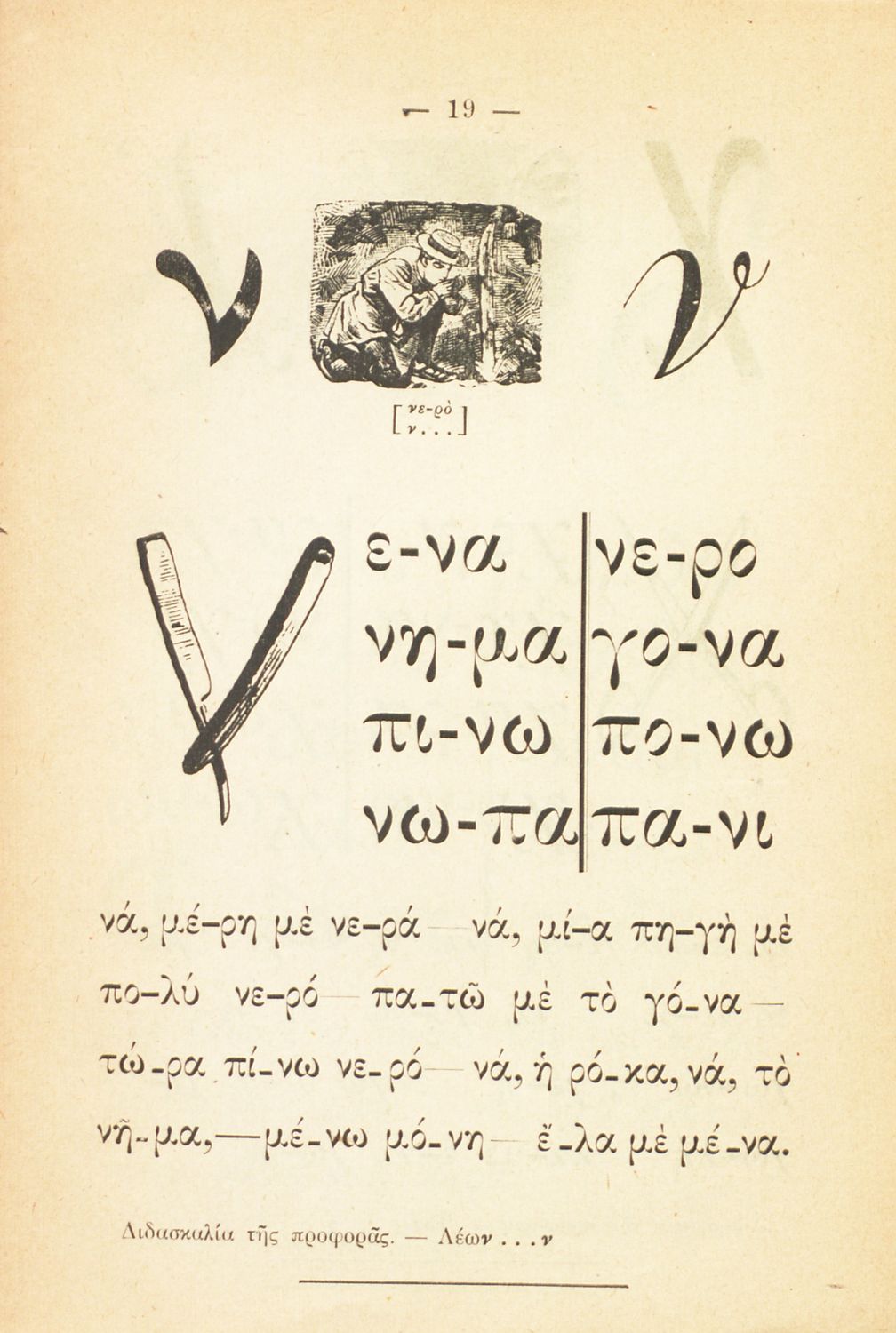 Αναγνωστικό [Α΄ ] Δημοτικού που περιέχει τα γράμματα, συλλαβές και λέξεις καθώς και ασκήσεις συλλαβισμού. Ο συγγραφέας ήταν δημοδιδάσκαλος και υπάλληλος στο Ελληνικό Προξενείο στο Μοναστήρι (Μπίτολα).