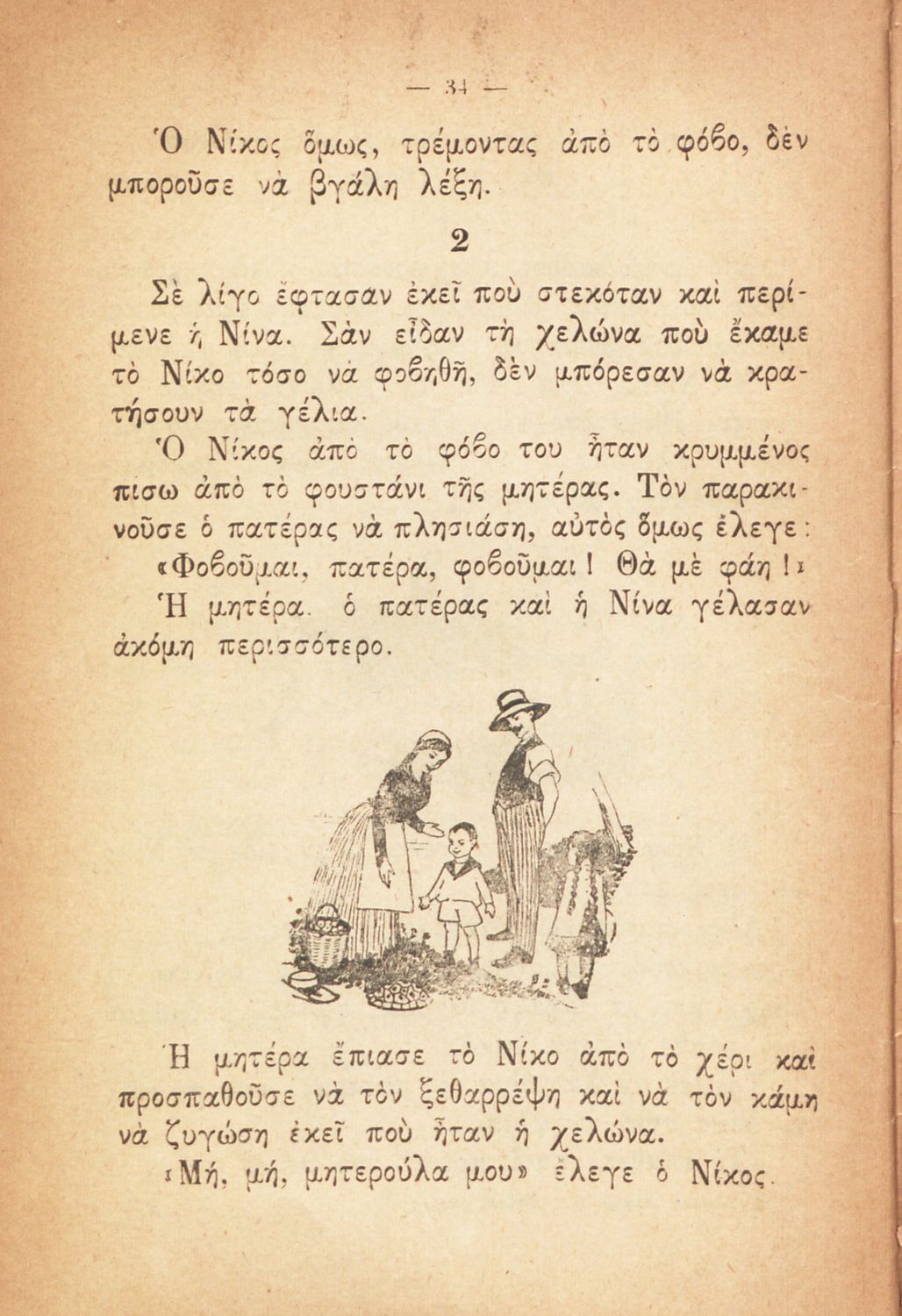 Αναγνωστικό Α΄ Δημοτικού που περιγράφει, μέσα από διηγήματα και ποιήματα, την οικογενειακή ζωή δύο μικρών παιδιών, του Νίκου και της Νίνας, και εστιάζει, με διδακτικό και φρονηματικό τρόπο, στα χαρακτηριστικά της υγιούς οικογένειας. Περιέχει και ιστορίες από την ελληνική ύπαιθρο, την αγάπη για το περιβάλλον και τα ζώα και την καλλιέργεια του ενάρετου βίου.