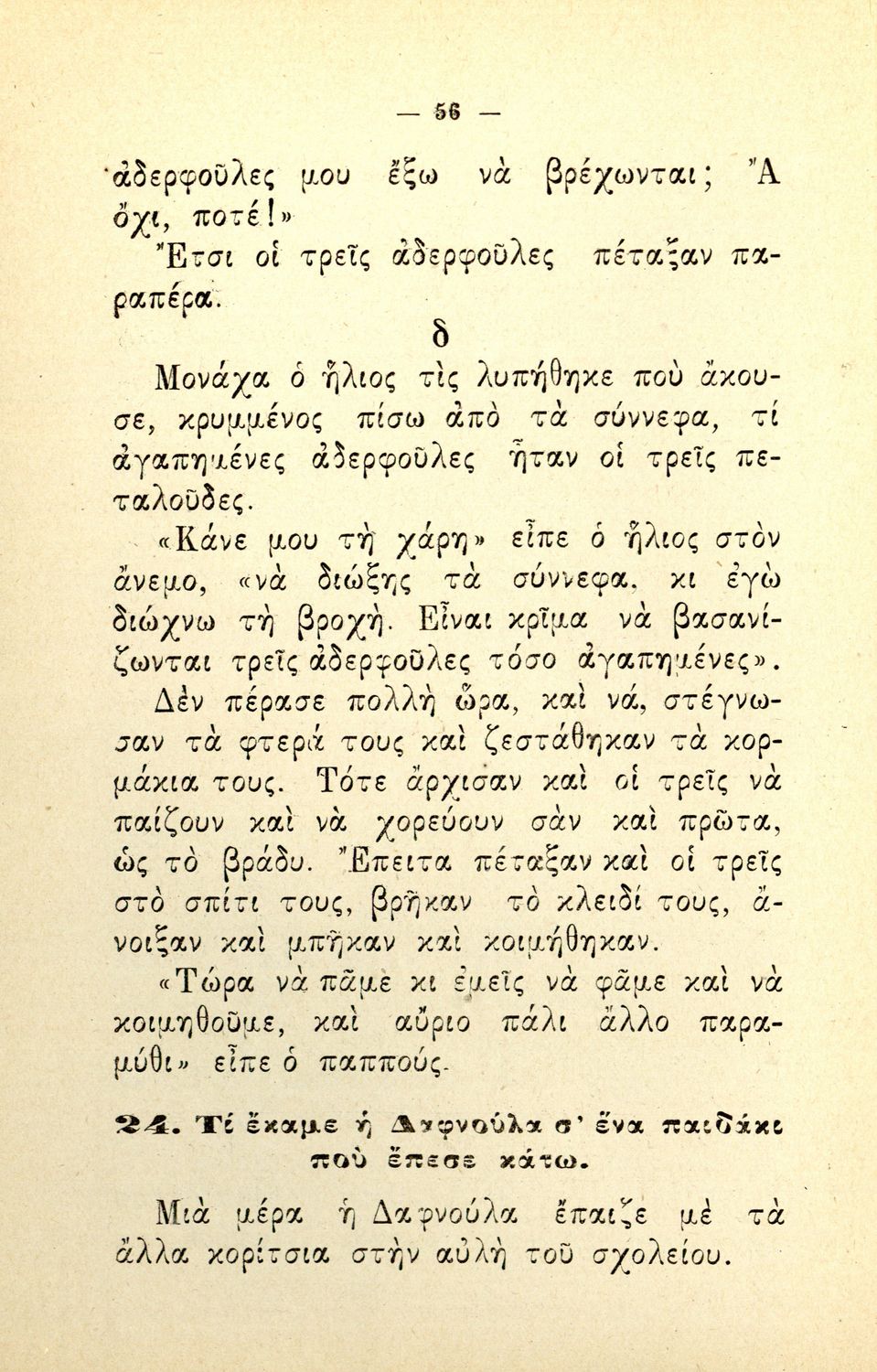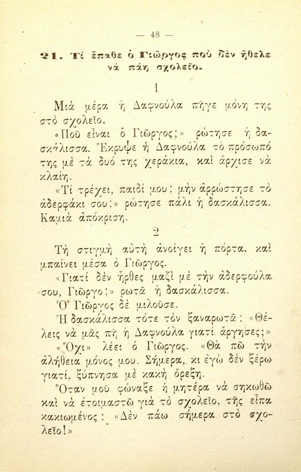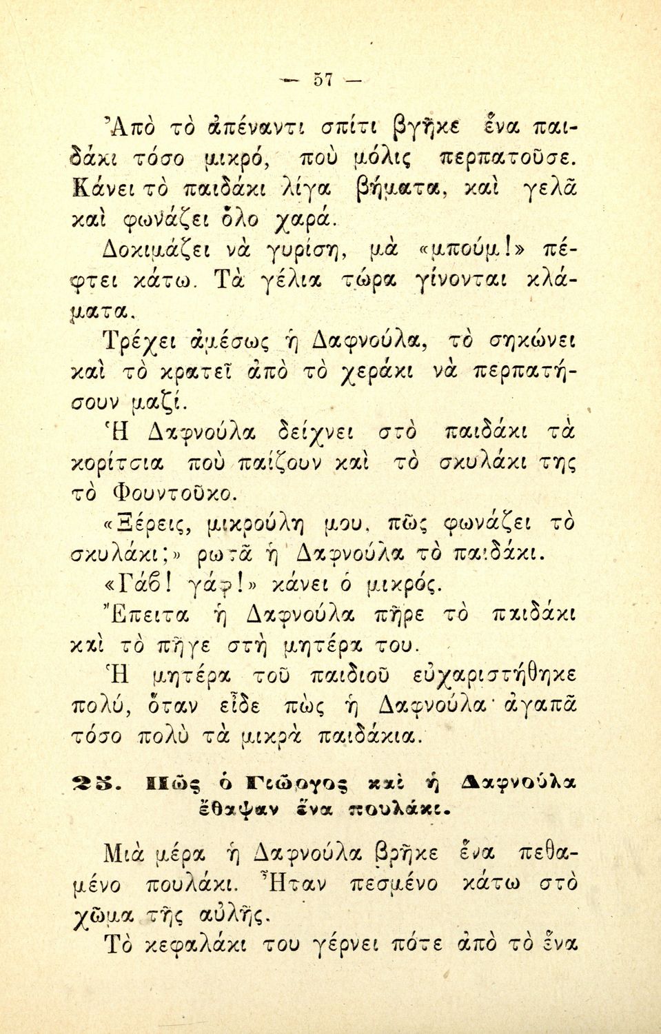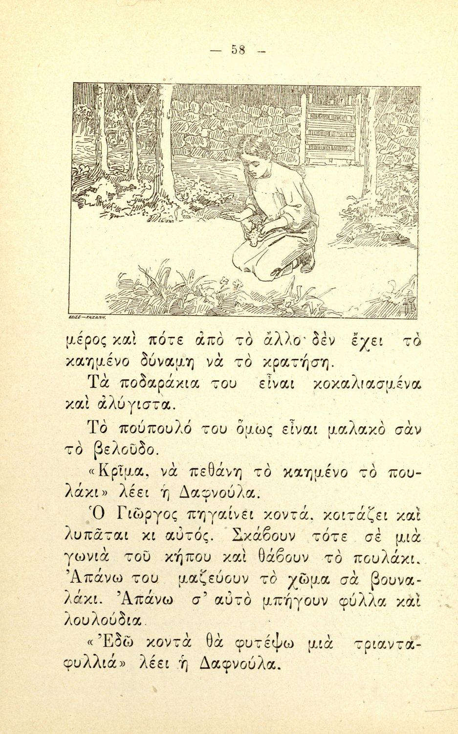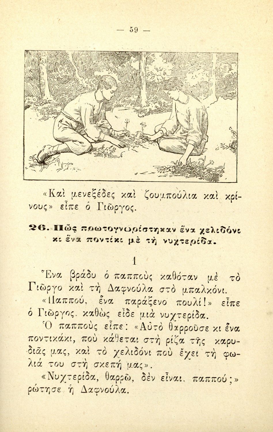 Αναγνωστικό Α΄ Δημοτικού που περιέχει μικρές αφηγηματικές ιστορίες και ποιήματα του Πάλλη και του Πολέμη με ηθικοπλαστικό περιεχόμενο.