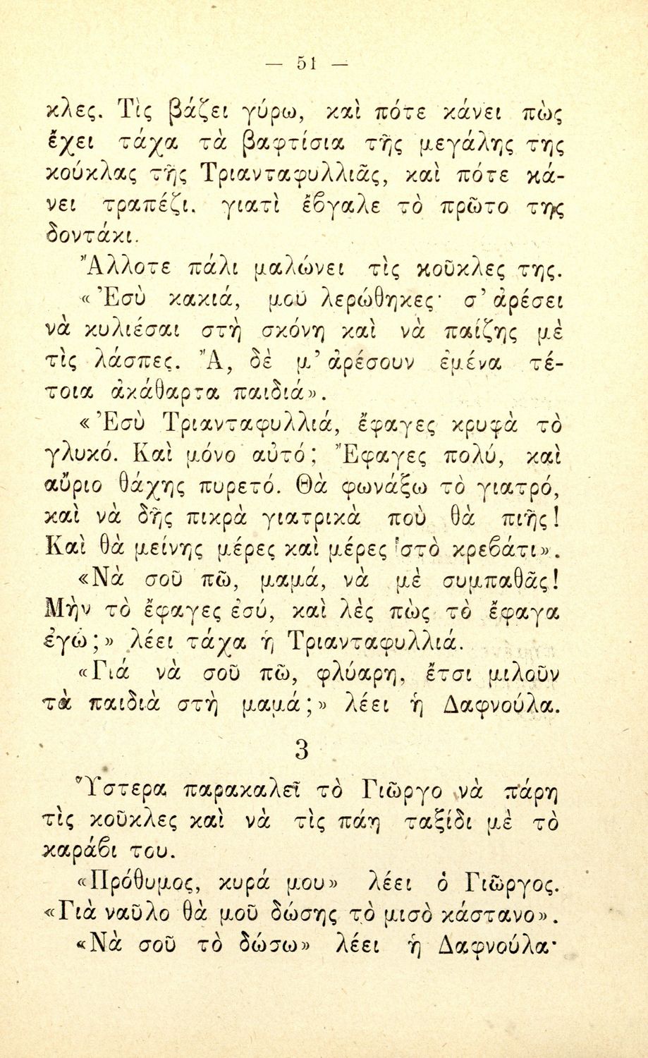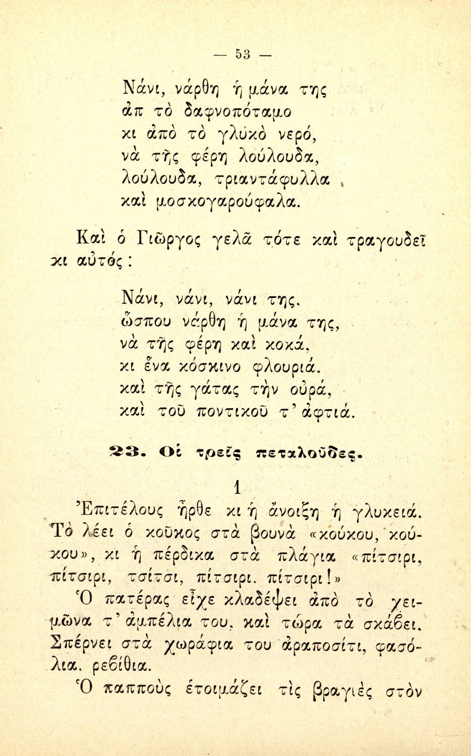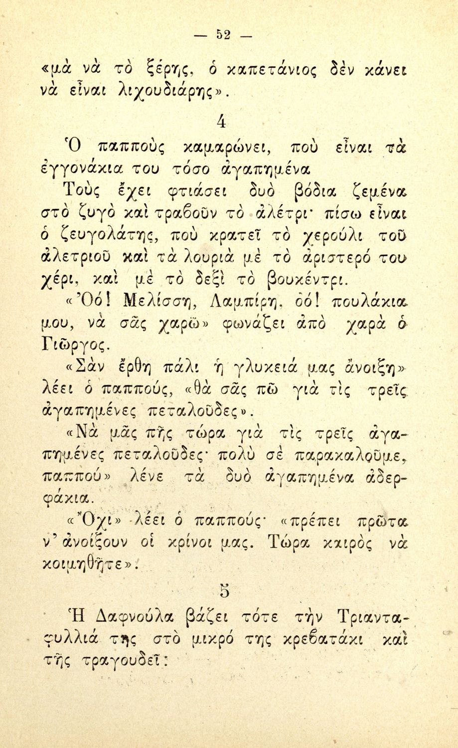 Αναγνωστικό [Α΄ Δημοτικού] που περιλαμβάνει ποιηματάκια και ιστοριούλες και αντλεί τη θεματολογία του από καθημερινά περιστατικά, την ελληνική ύπαιθρο και την ελληνική οικογένεια.